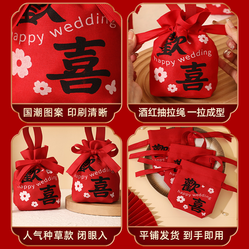 喜糖袋结婚免折叠帆布袋子自封喜糖盒伴手礼小礼品糖果包装盒新款