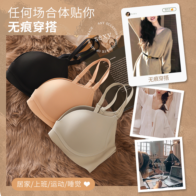 日本无痕内衣女小胸聚拢上托防下垂收副乳软支撑薄款无钢圈文胸罩