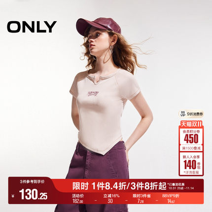ONLY2025夏季新款辣妹时尚个性做旧V领修身不规则短款短袖T恤女