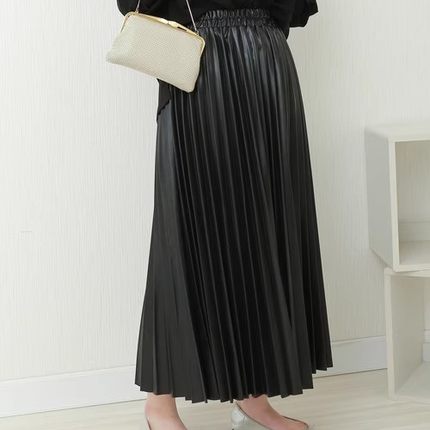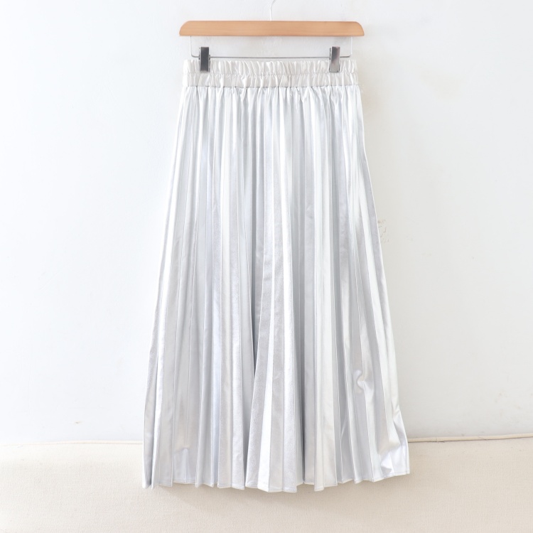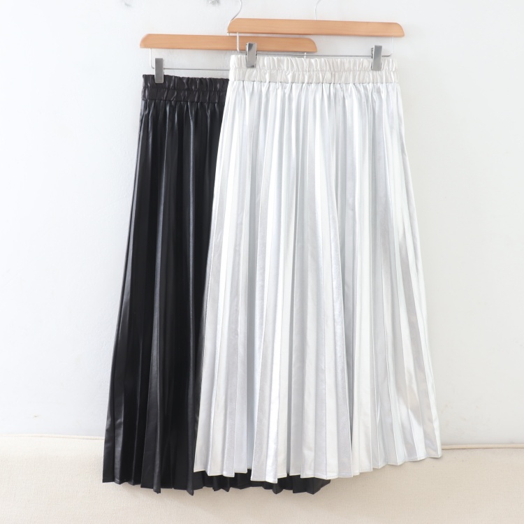 C08035日单秋冬款科技面料松紧高腰A字女长款气质百褶薄款半身裙