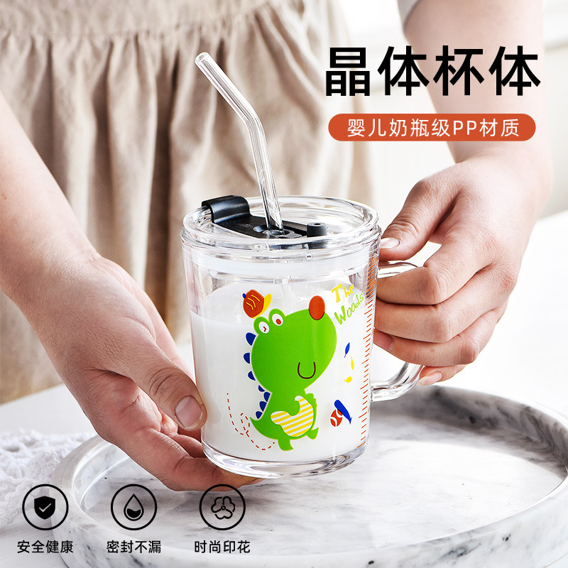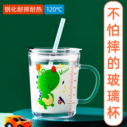 牛奶杯带刻度早餐喝奶吸管杯微波炉可加热玻璃耐热儿童冲泡奶粉杯
