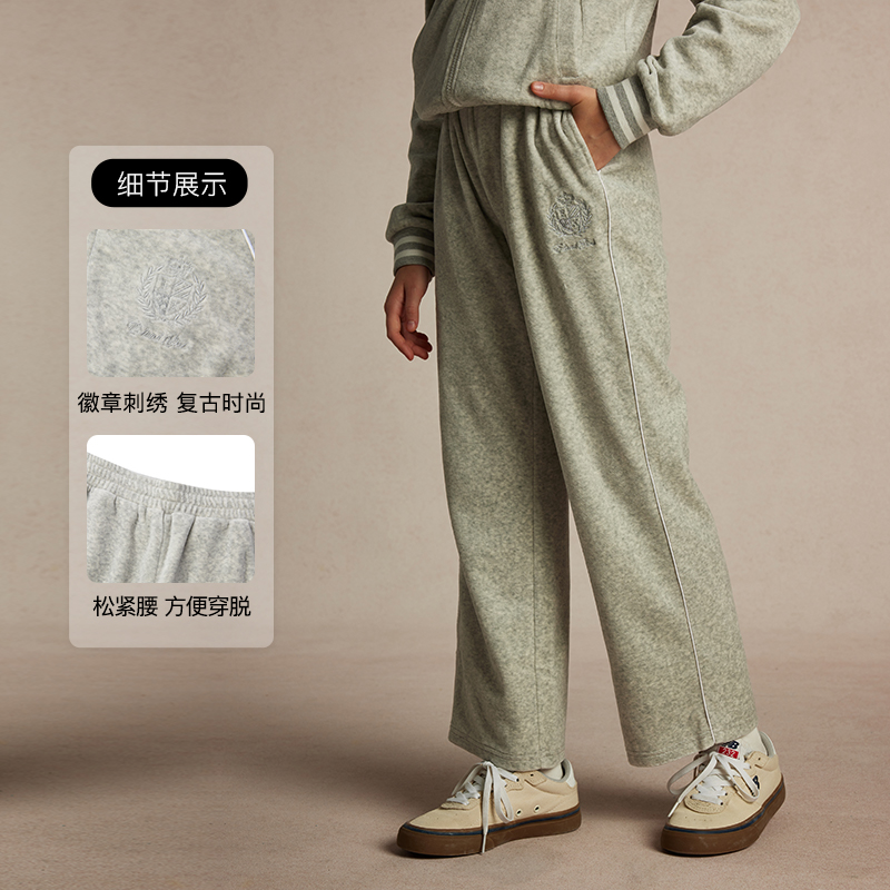 eland kids衣恋童装女童休闲裤春秋学院风刺绣裤子宽松运动直筒裤