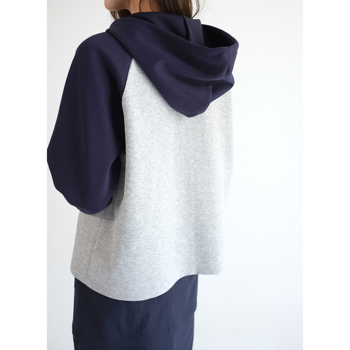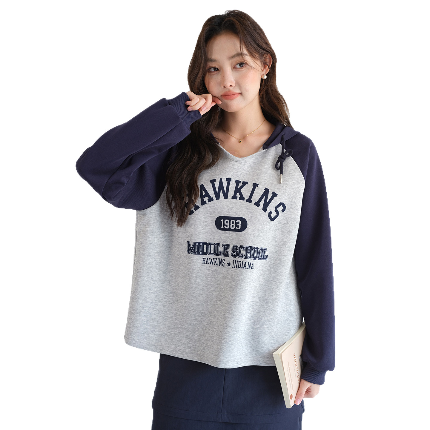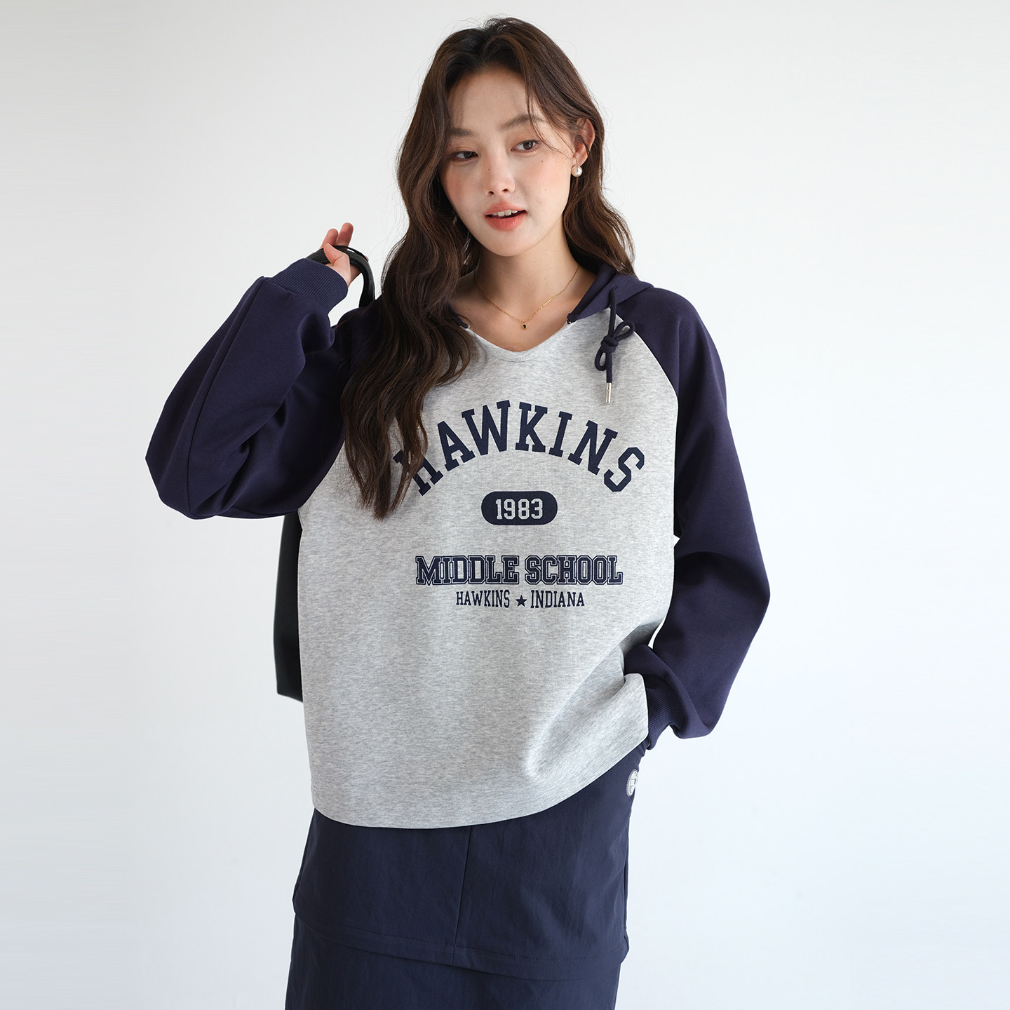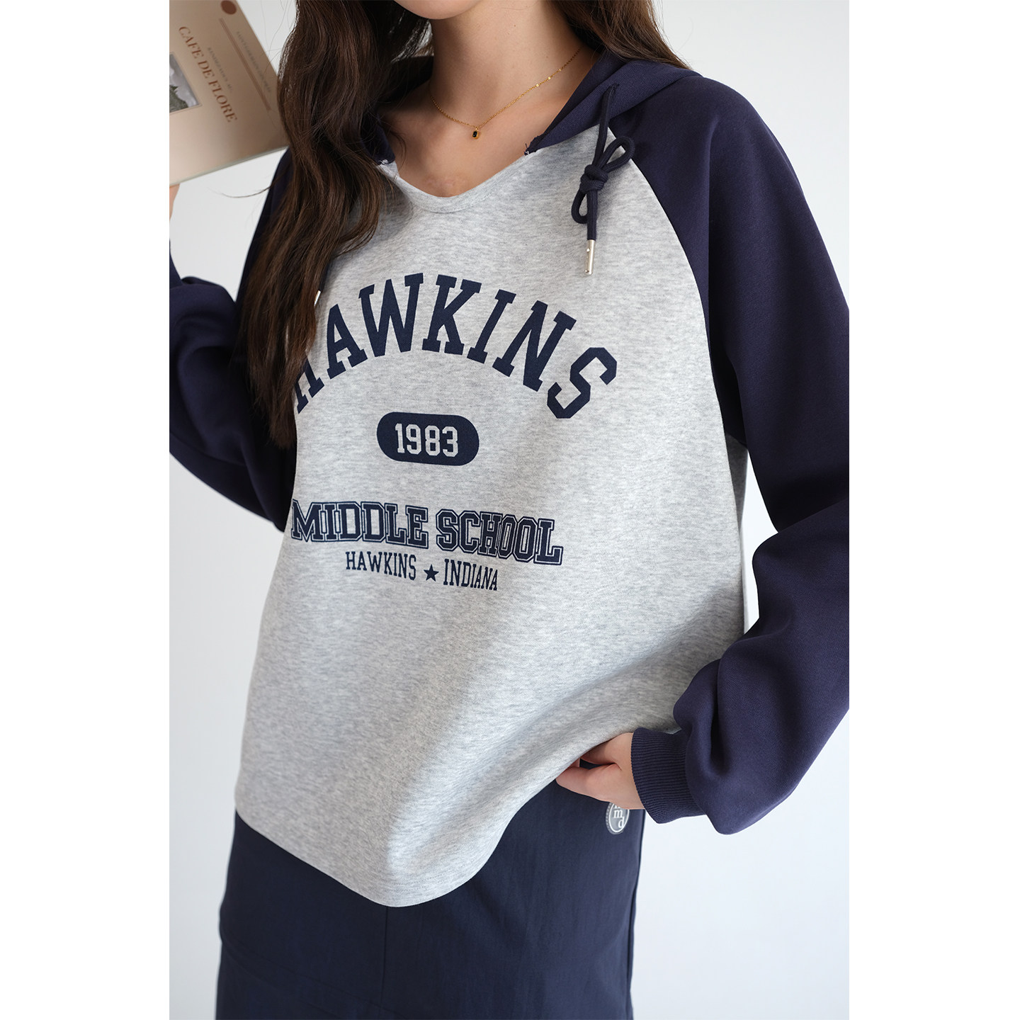 蓝若水学院风设计感假两件卫衣