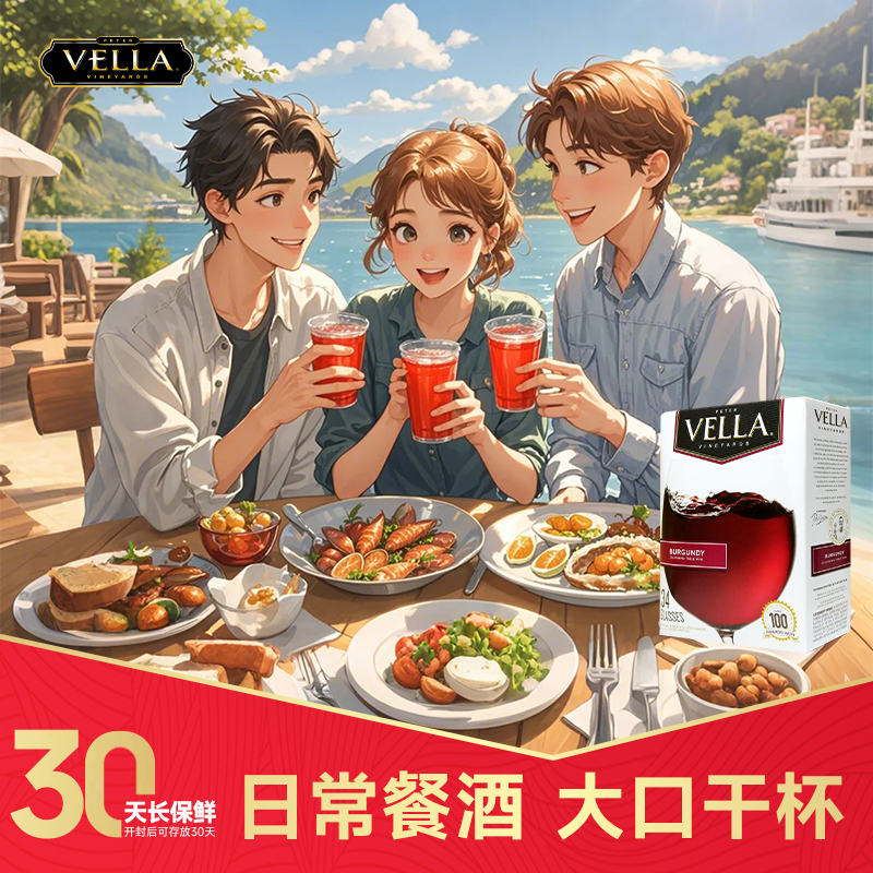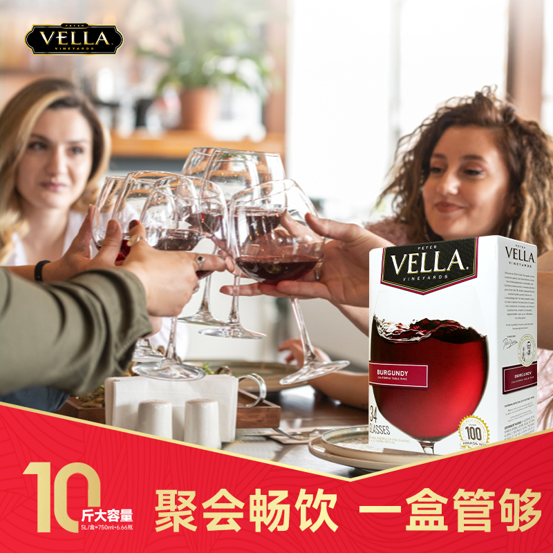 Vella百乐莱原盒进口5L盒装半干勃艮第红葡萄酒 聚餐送礼红酒