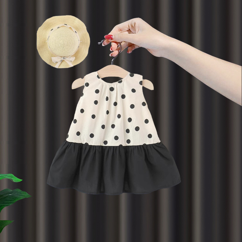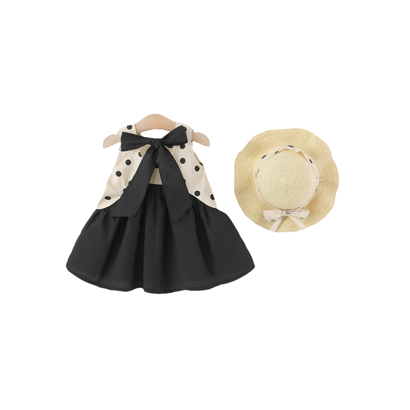 女宝宝夏季连衣裙婴儿黑色波点背心裙女童韩版蝴蝶结千金风公主裙