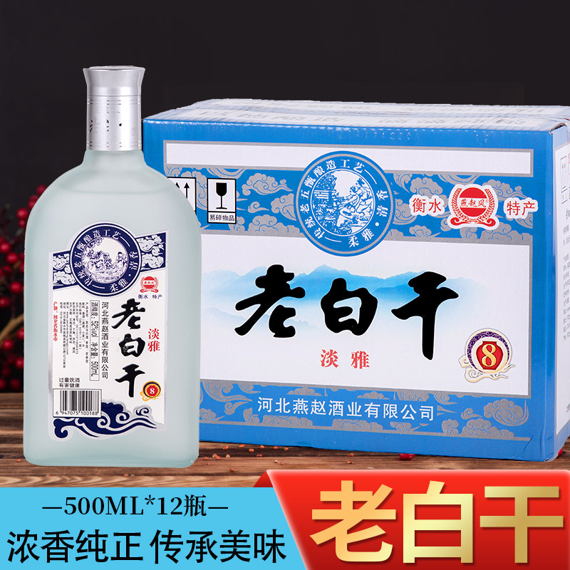 老白干衡水特产42度浓香型白酒52度淡雅磨砂扁瓶500ml*12瓶粮食酒