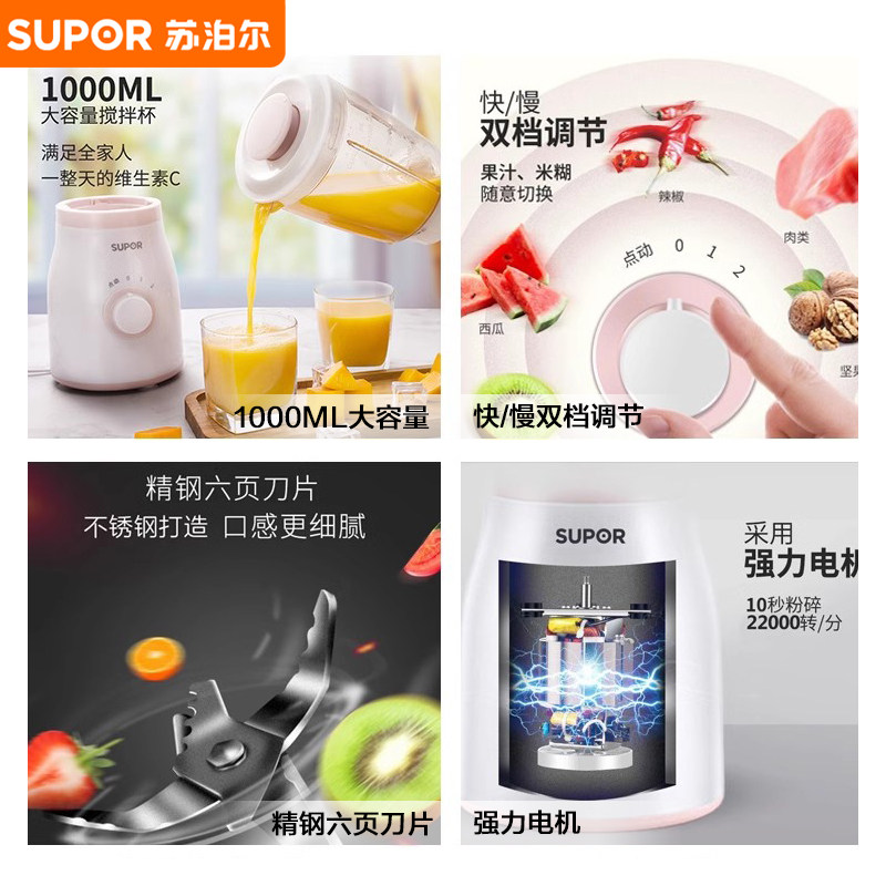 苏泊尔榨汁机家用水果全自动多功能小型打炸果汁便携式料理搅拌机