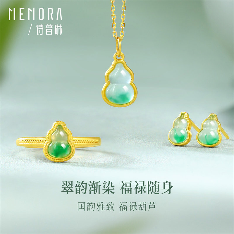 【剩1件】诗普琳 黄金足金高温珐琅福禄葫芦耳钉耳饰 送女友