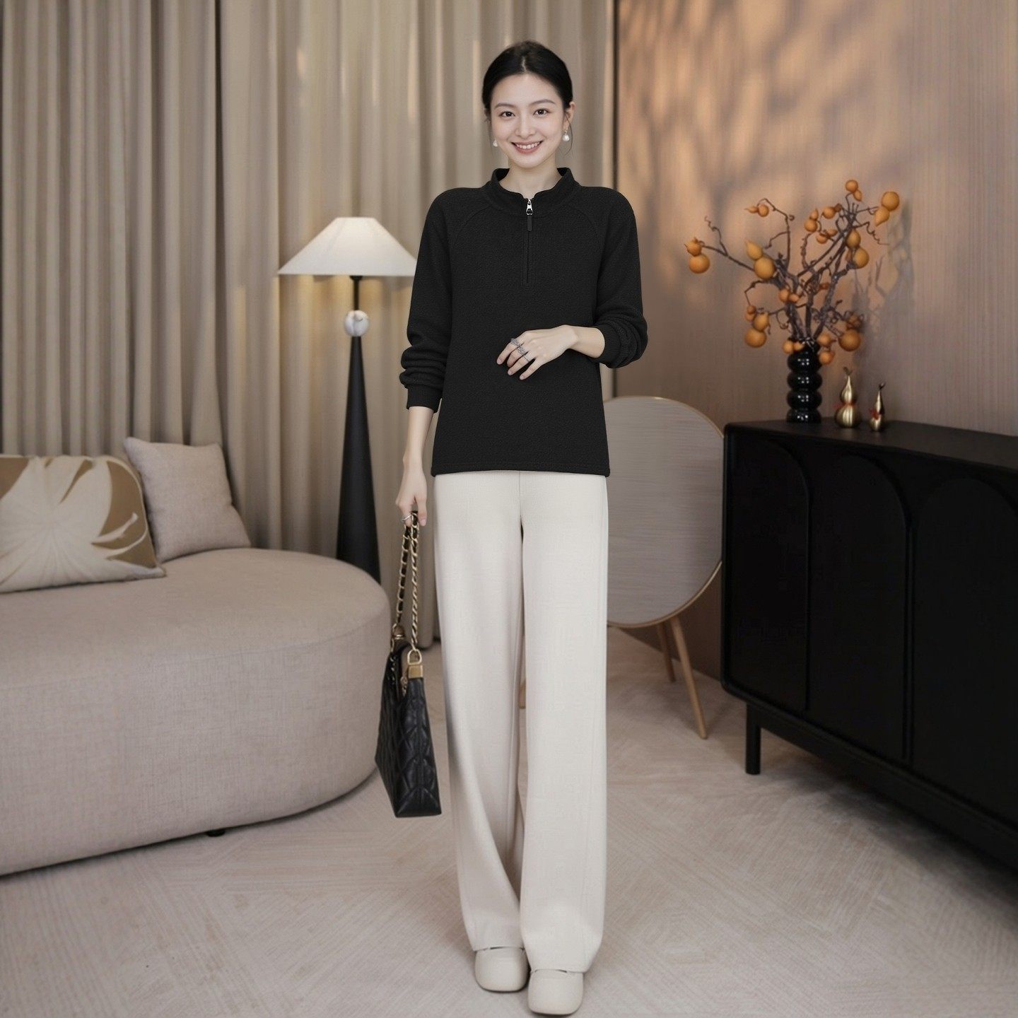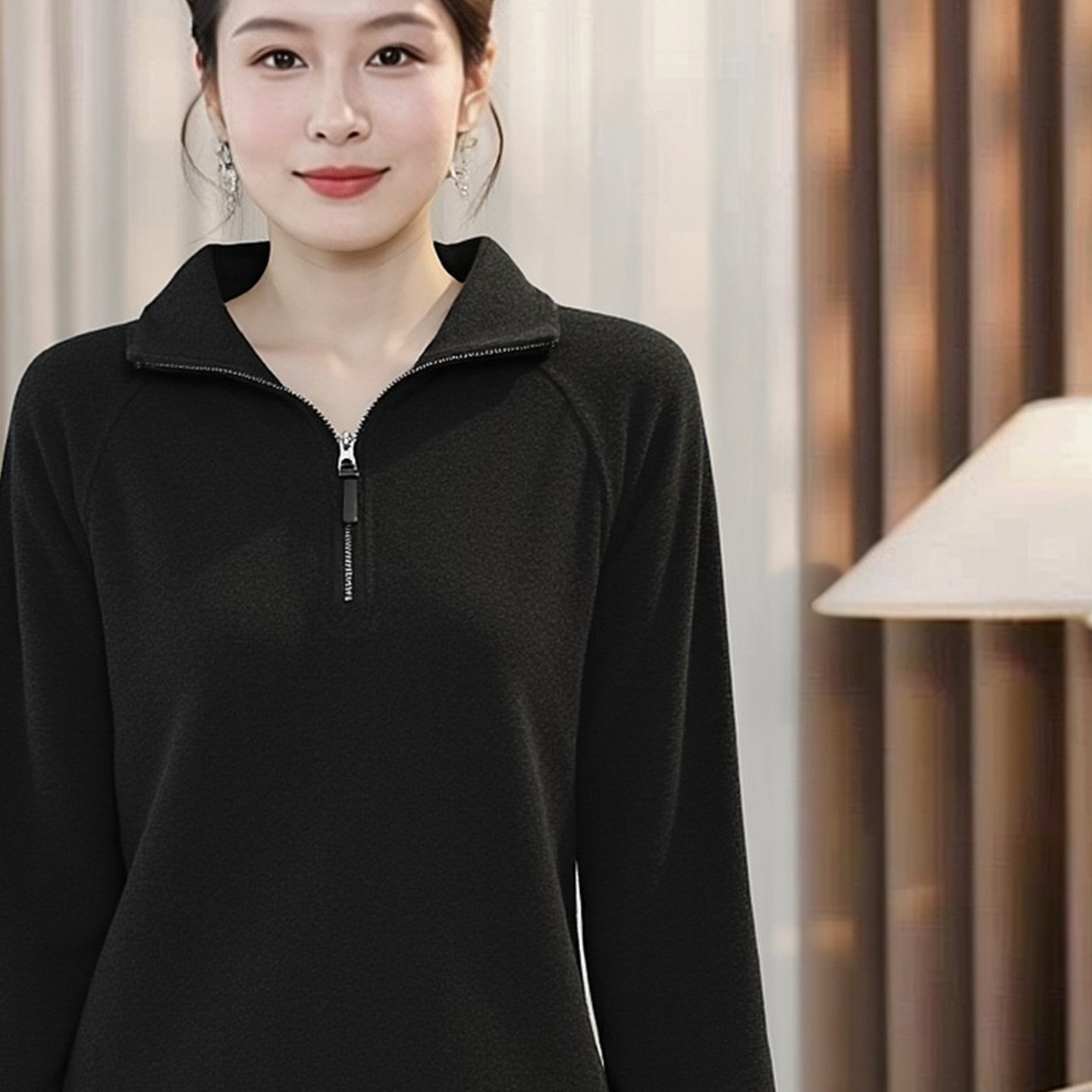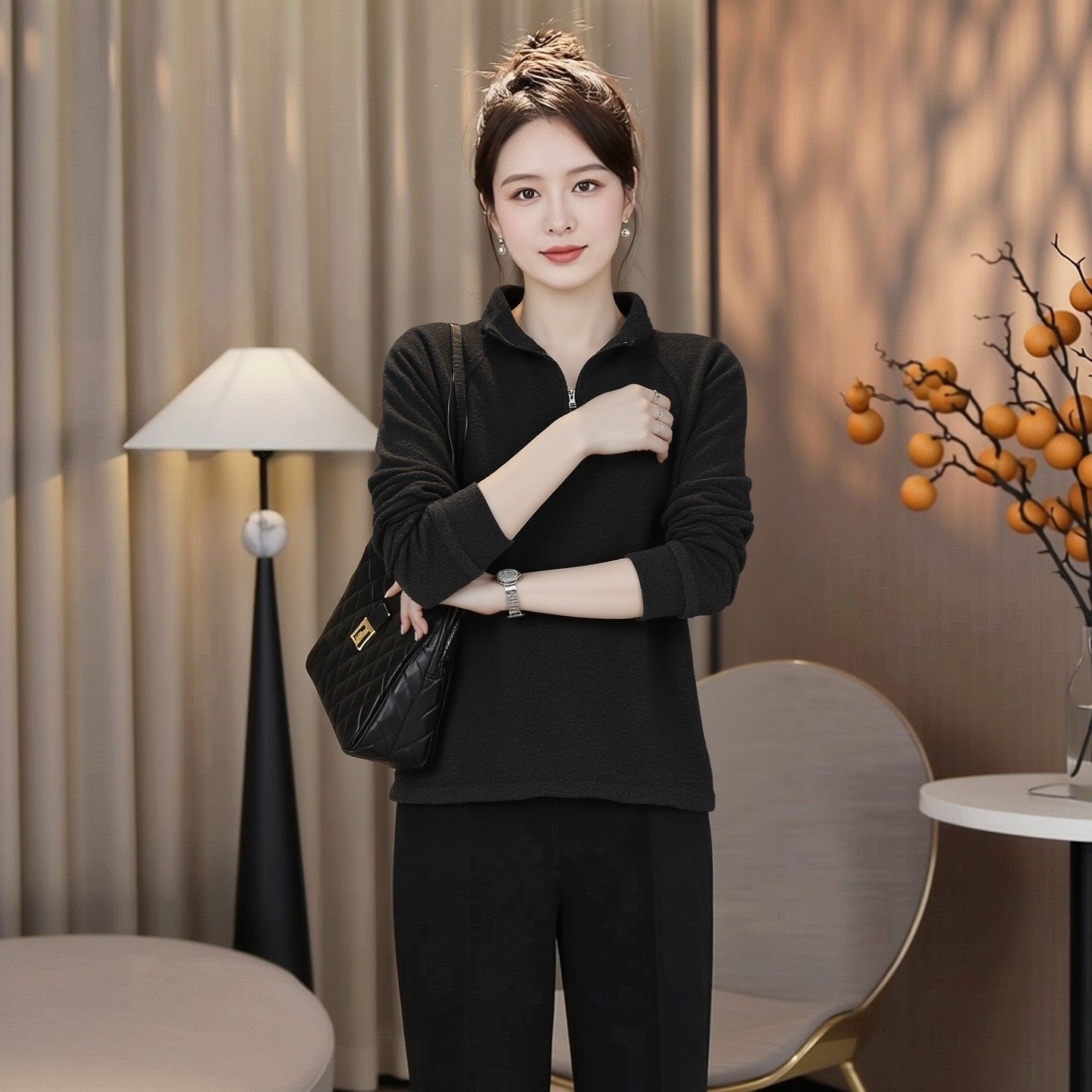 高端德绒立领半拉链卫衣女大码胖mm秋冬妈妈高级感加绒加厚打底衫