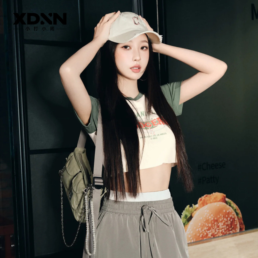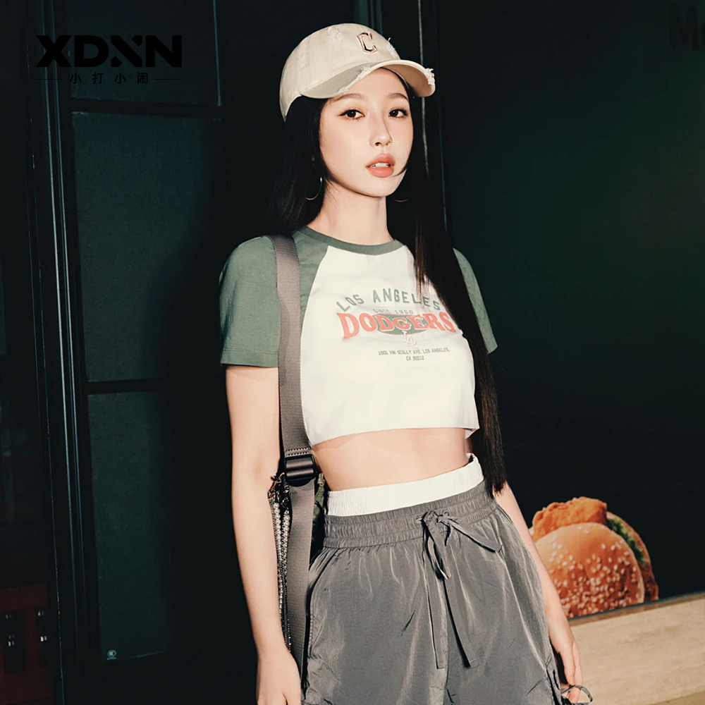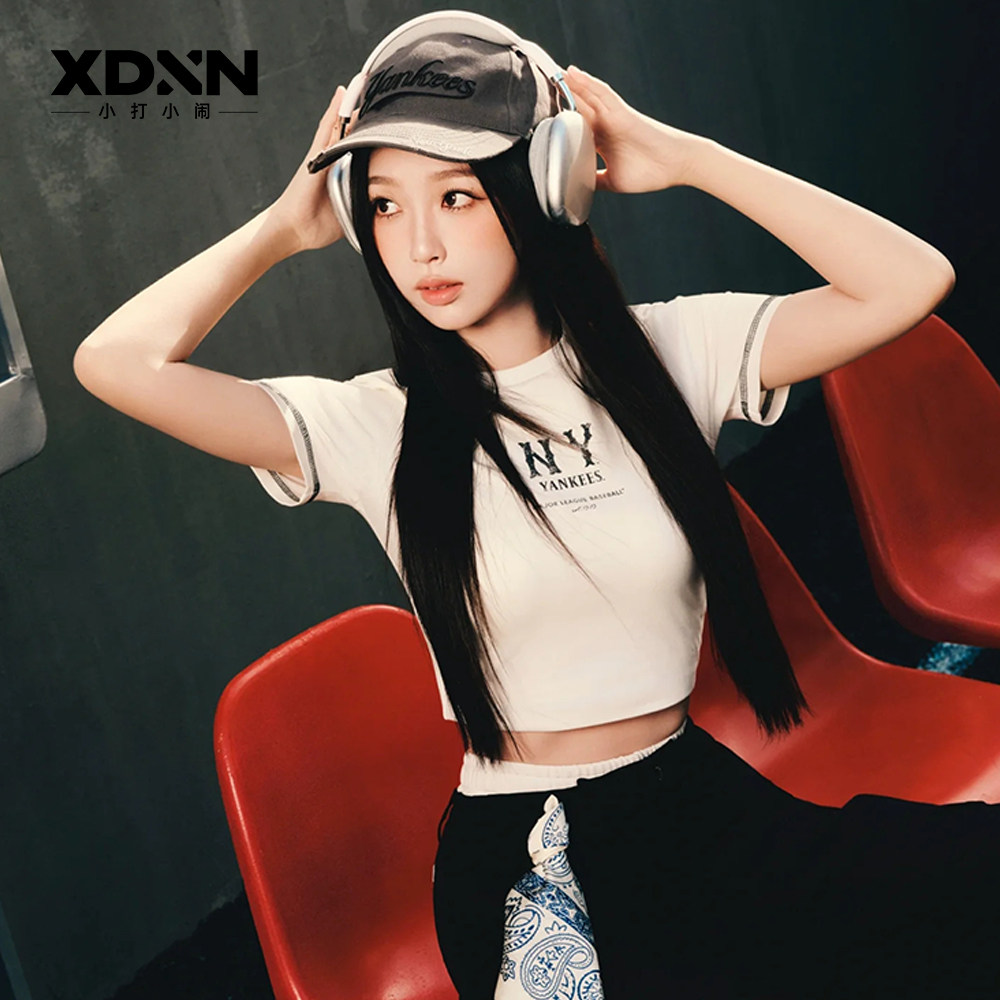 MLB 25秋季官方正品KARINA同款T恤撞色拼接女美式短袖上衣TSV08
