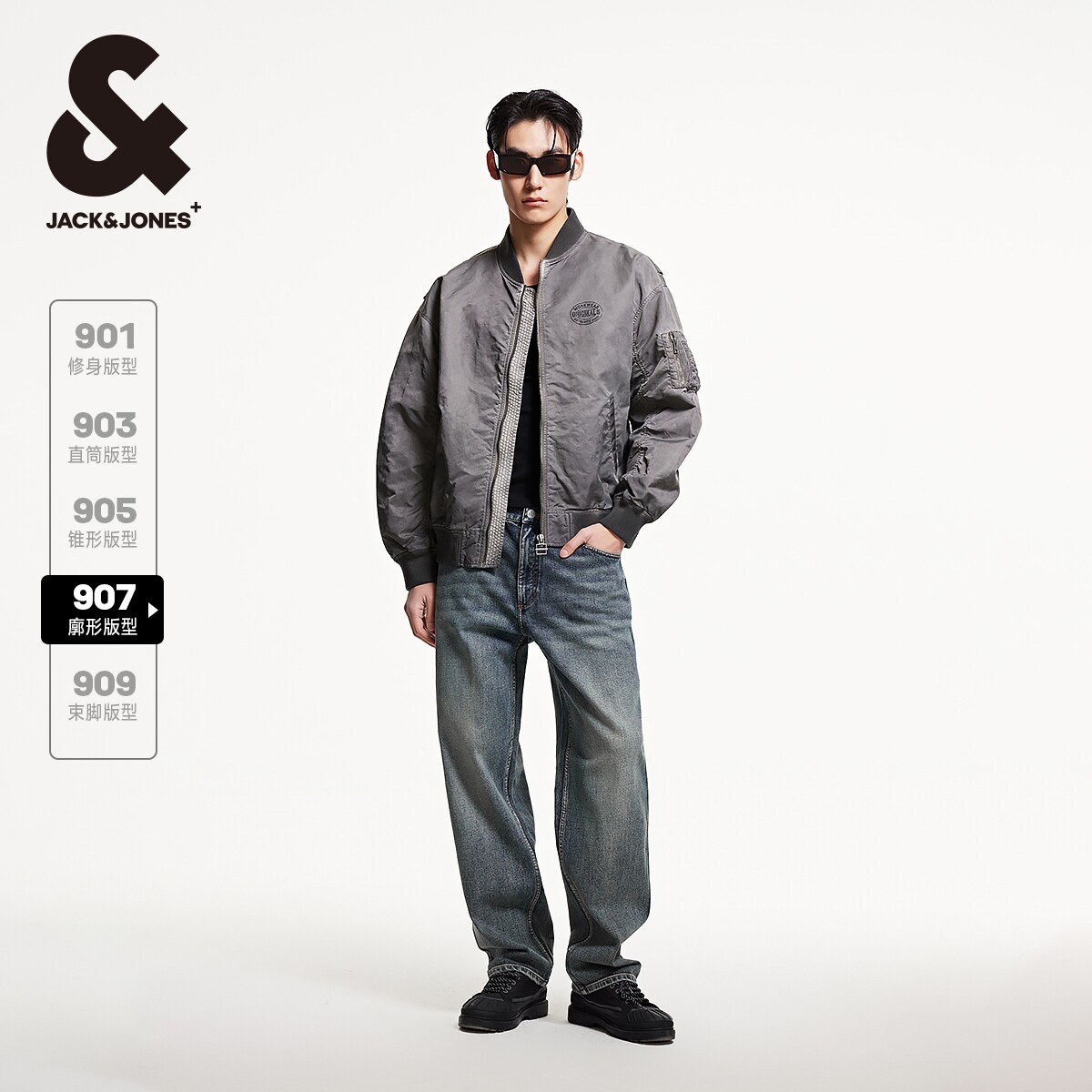 kq区绫致杰克琼斯夏时尚百搭行酷休闲廓形水洗长裤牛仔裤下装男