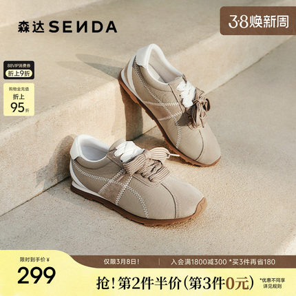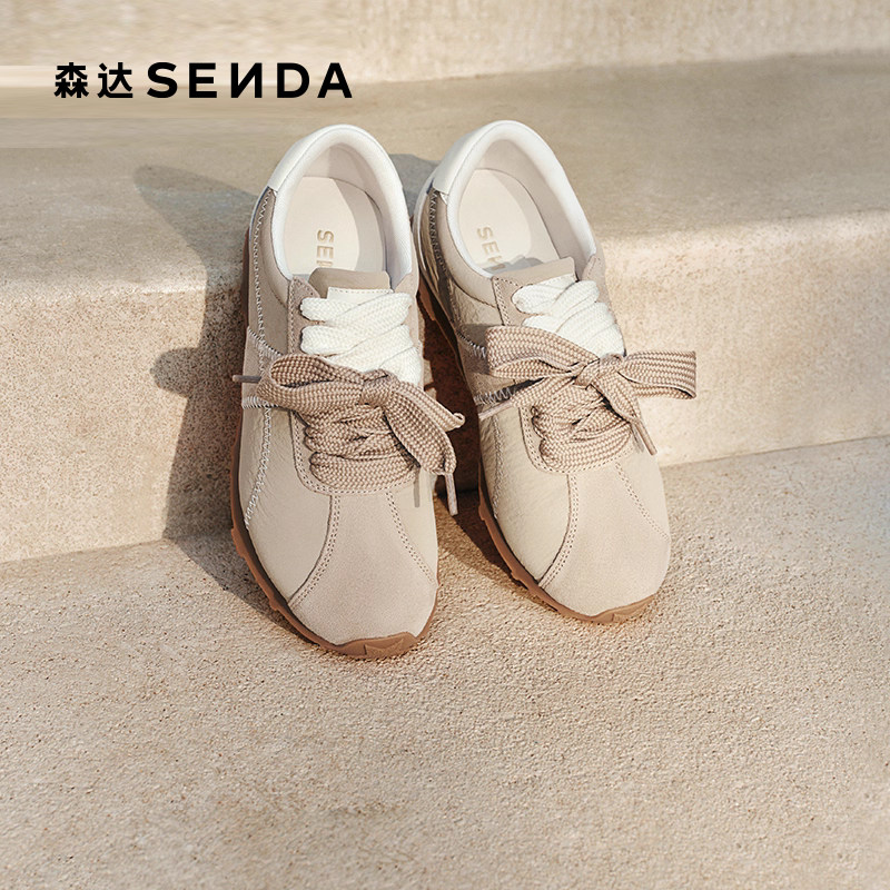 森达复古德训鞋女款运动休闲鞋春季商场同款平底百搭阿甘鞋XQU01
