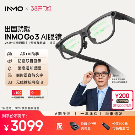 【领消费券减200】INMO GO3 AI眼镜双目显示智能AR眼镜实时对话翻译提词黑科技AI对话助手AR拍照拍摄识别