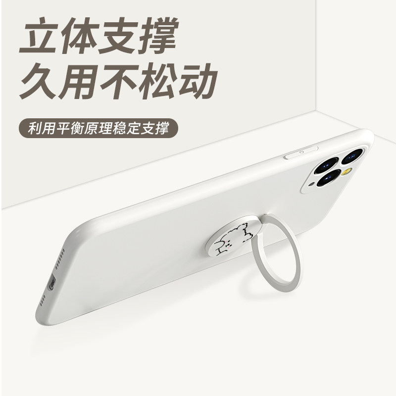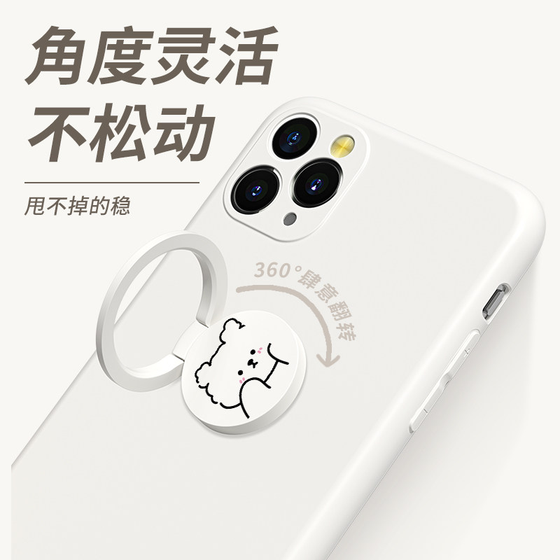 手机指环支架象牙白线条托脸熊可爱卡通粘贴性车载磁性多功能懒人男女款古董白折叠指环扣单个粘贴式追剧神器