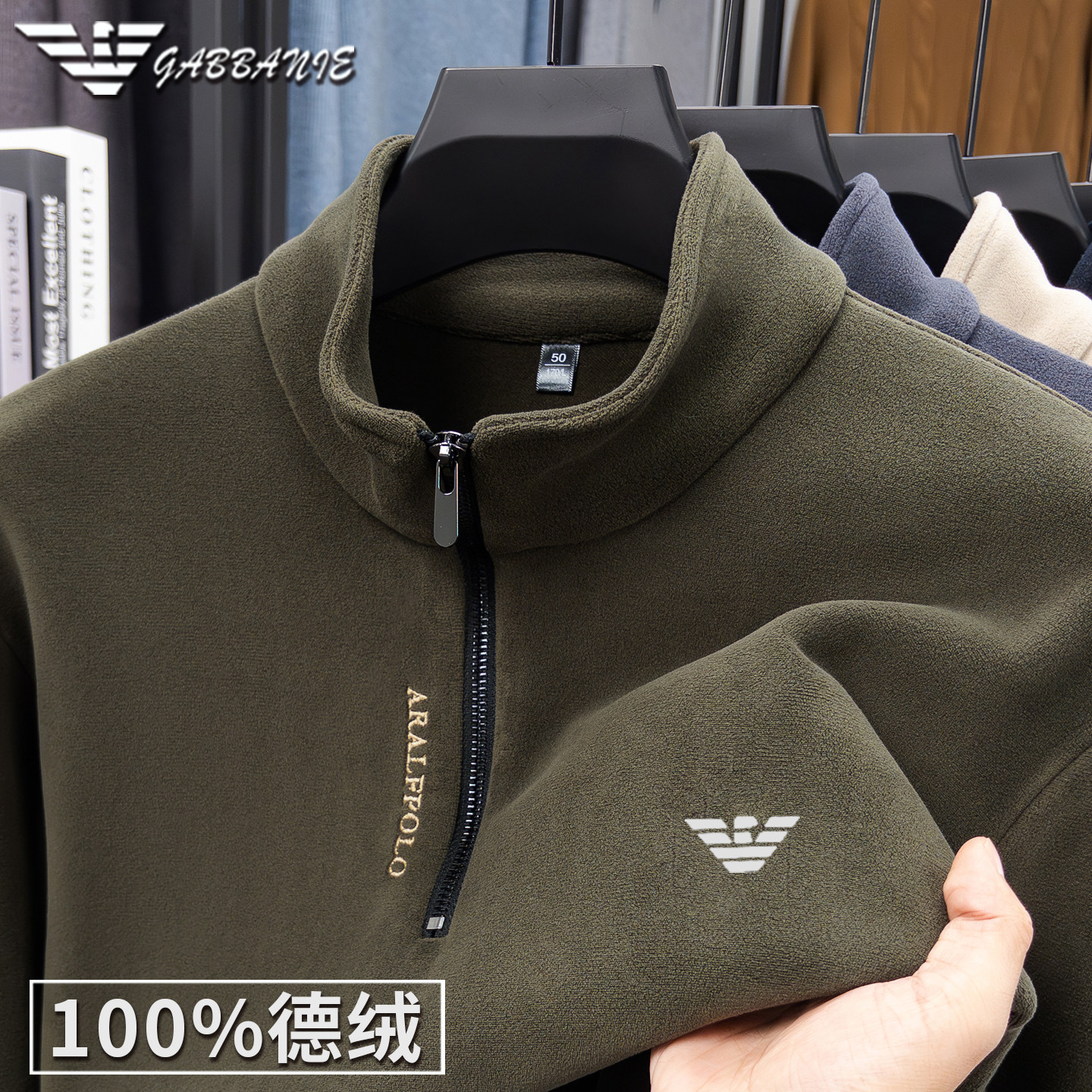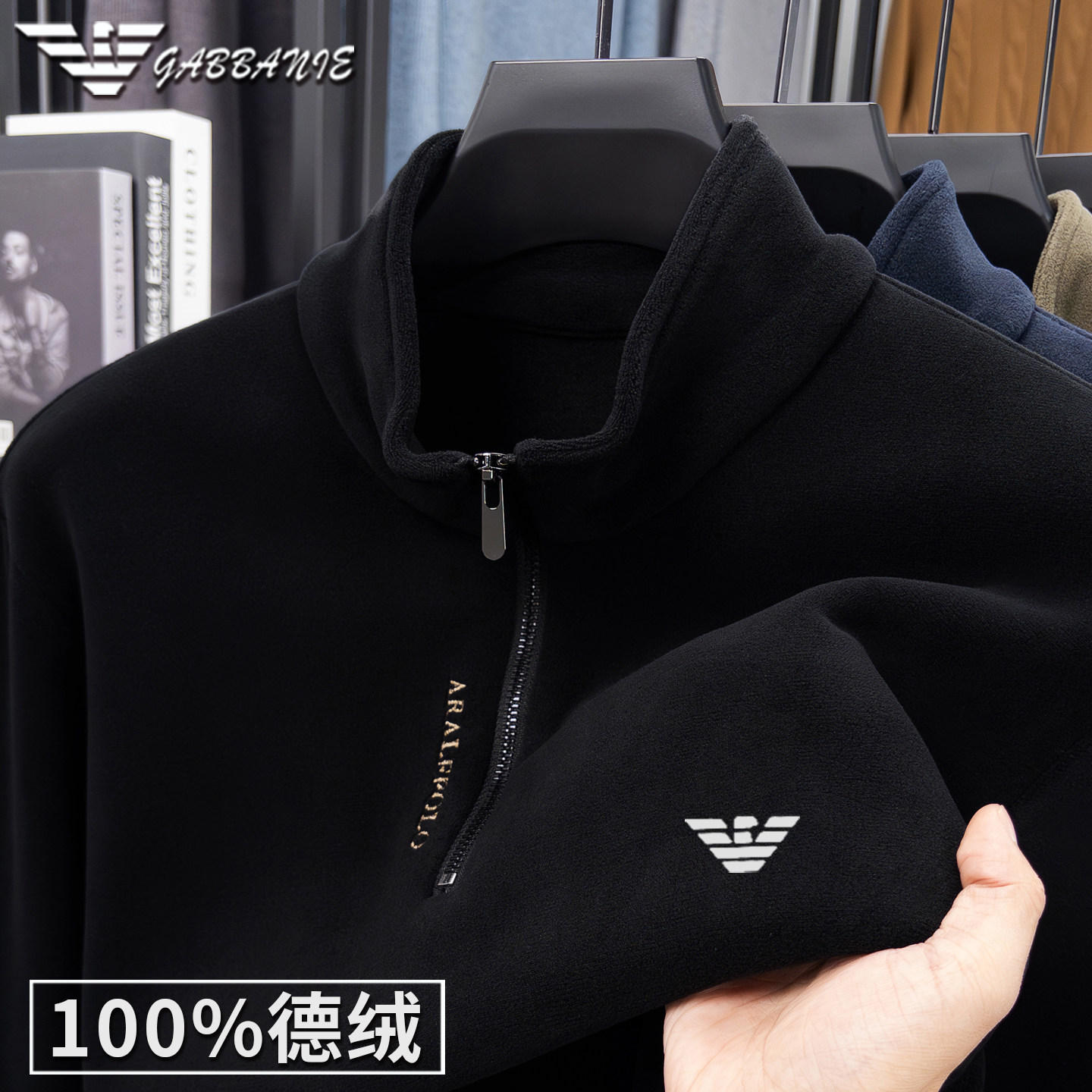 正品意大利名牌高端拉链卫衣男士秋冬德绒打底衫立领保暖长袖t恤