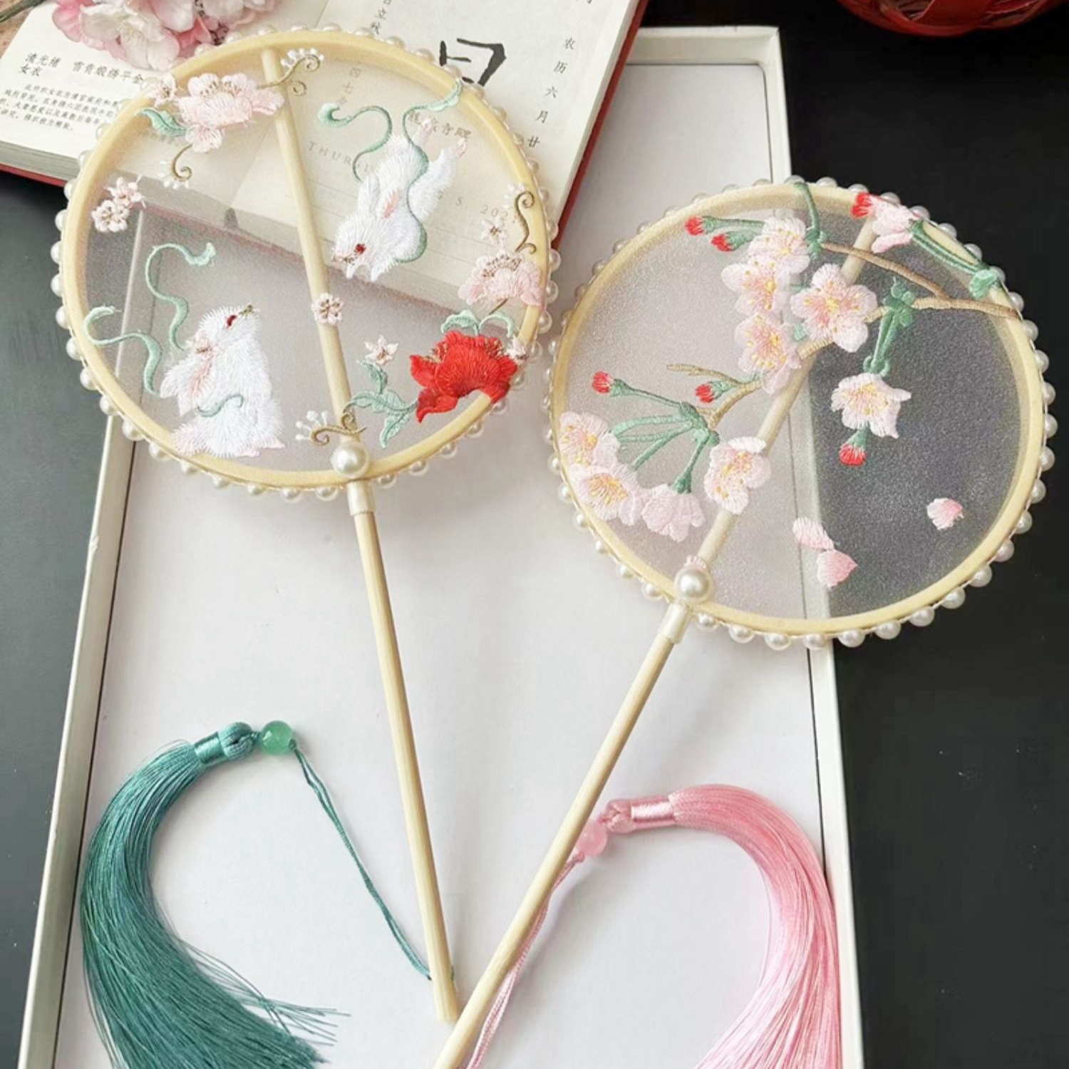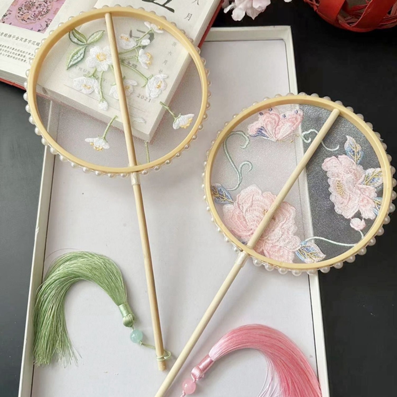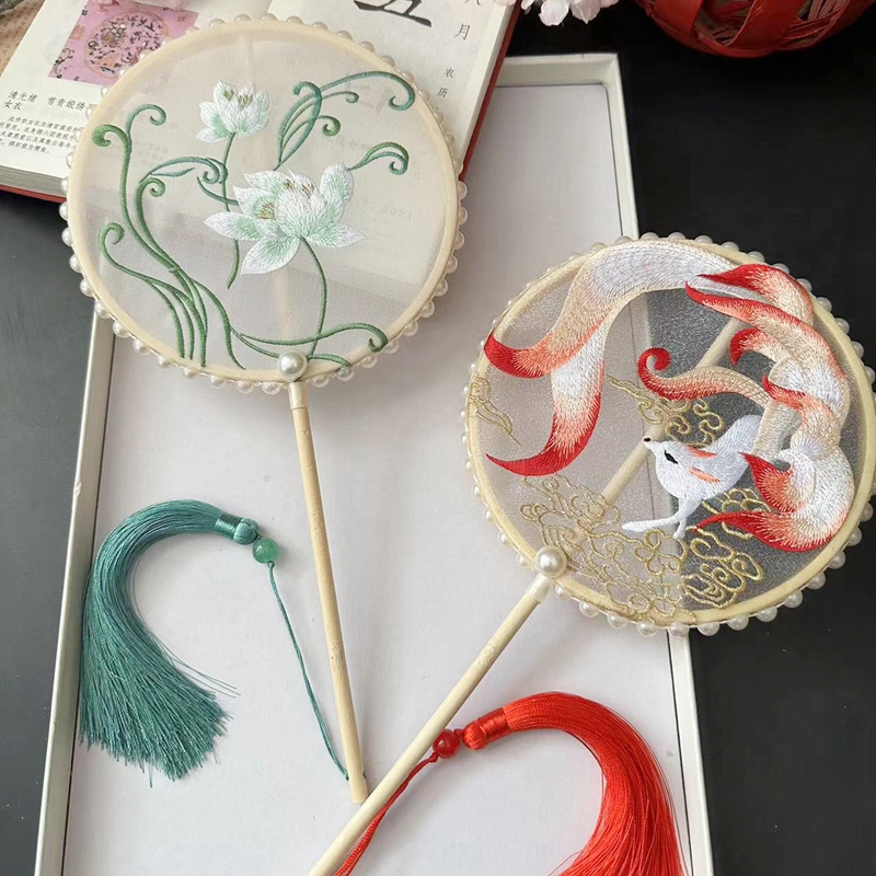 刺绣团扇子汉服迷你古风原创高端圆形宝宝舞蹈旗袍儿童小号夏季女