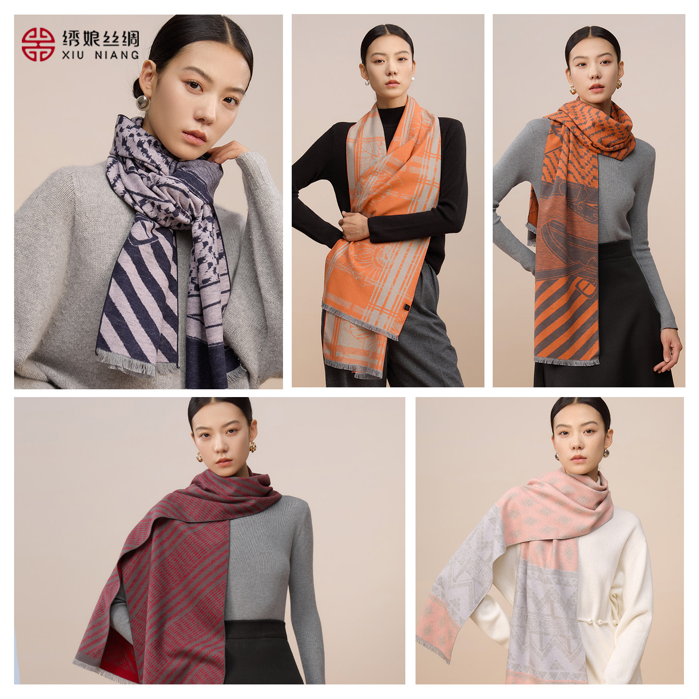 绣娘丝绸高级新款真丝绒围巾女款冬季100%桑蚕丝保暖护颈围脖披肩
