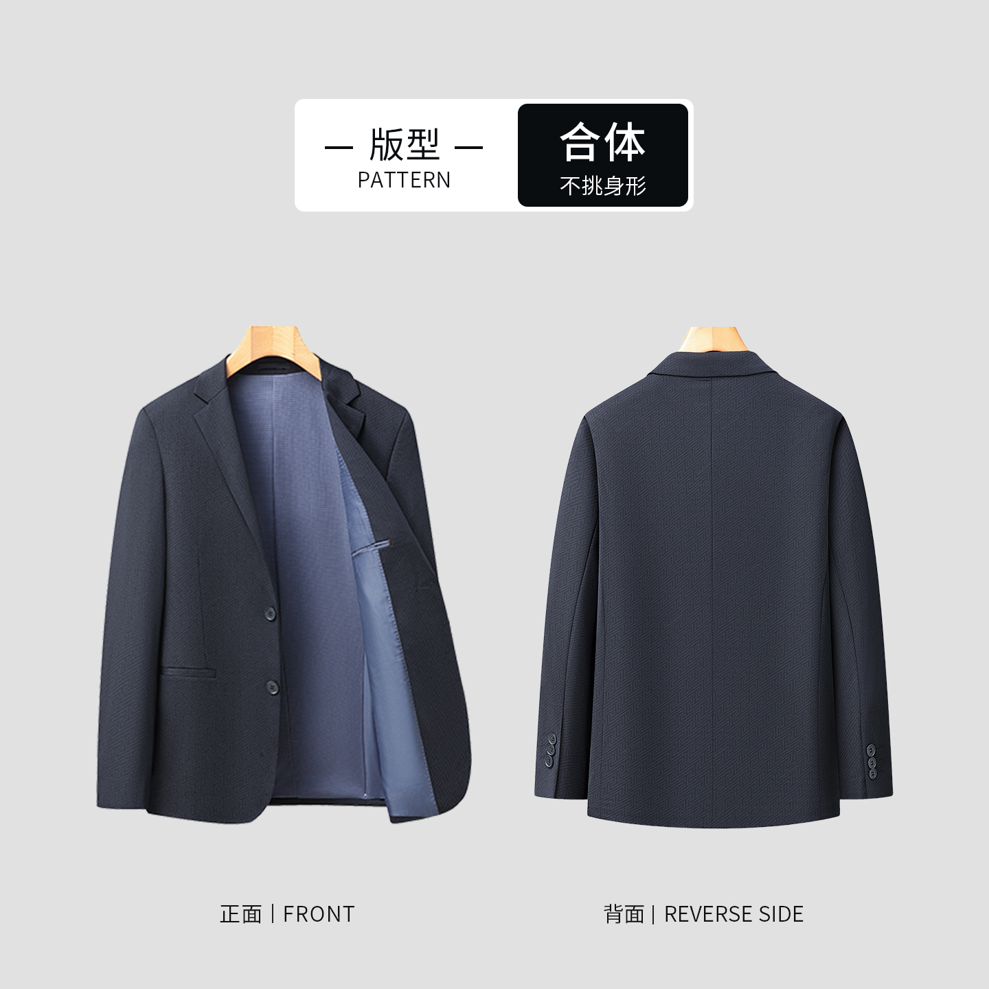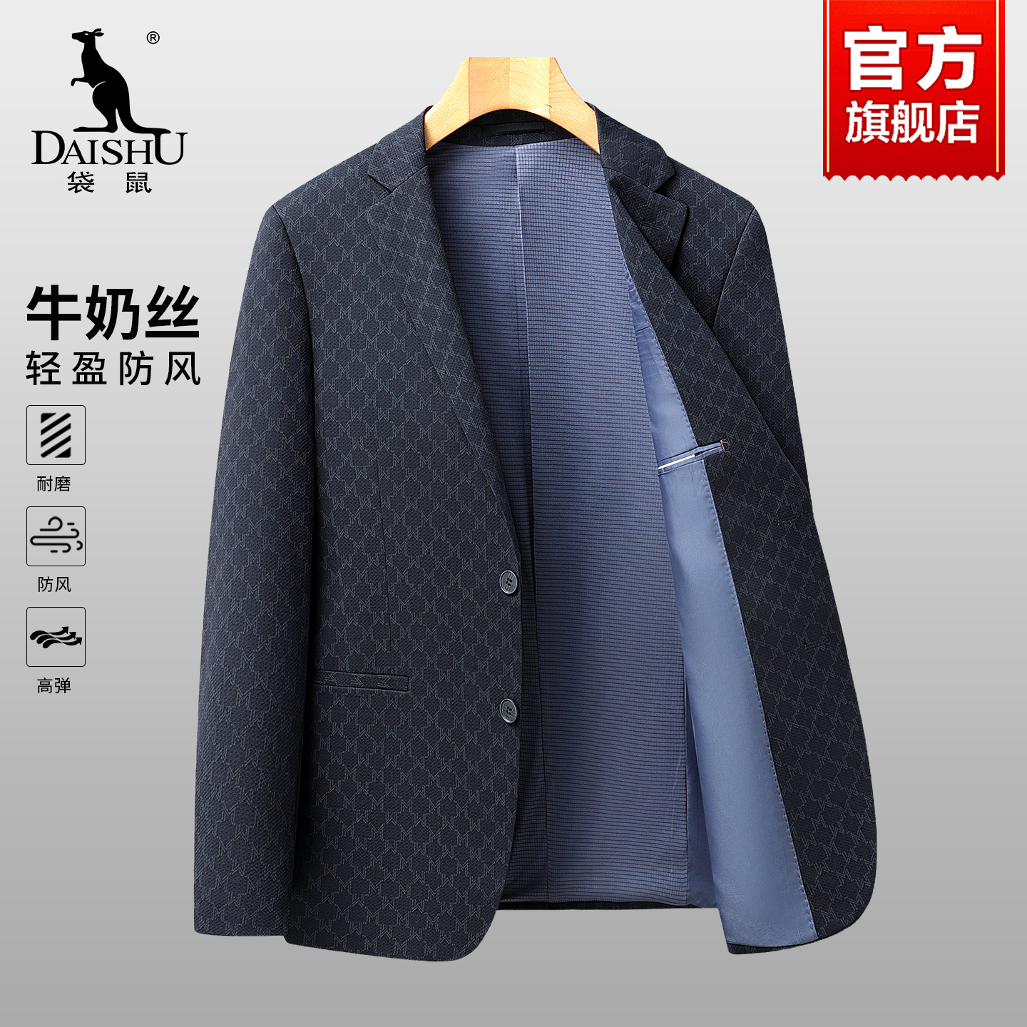袋鼠男士西服外套春秋新款休闲宽松弹力高级感中老年爸爸商务西装