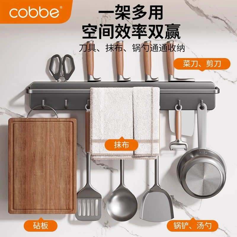 卡贝不锈钢厨房置物架挂钩勺子铲子挂架多功能挂杆锅铲抹布排钩架