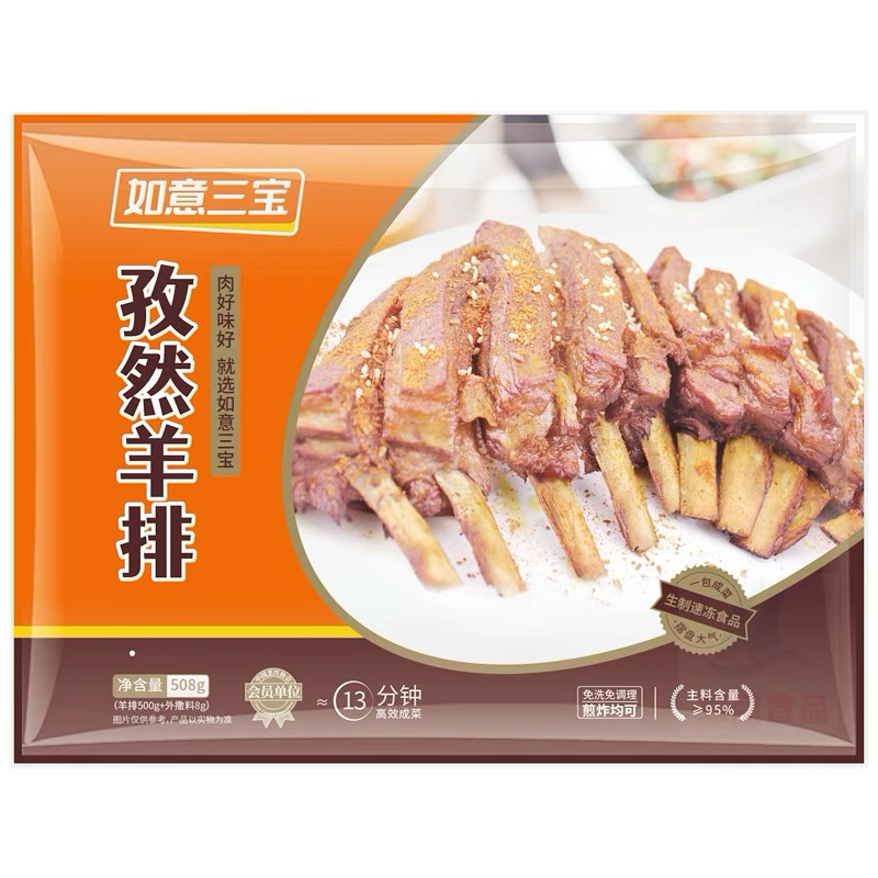 如意三宝孜然羊排508g腌制半成品羊肋排带骨羊肉烧烤冷冻食材商用