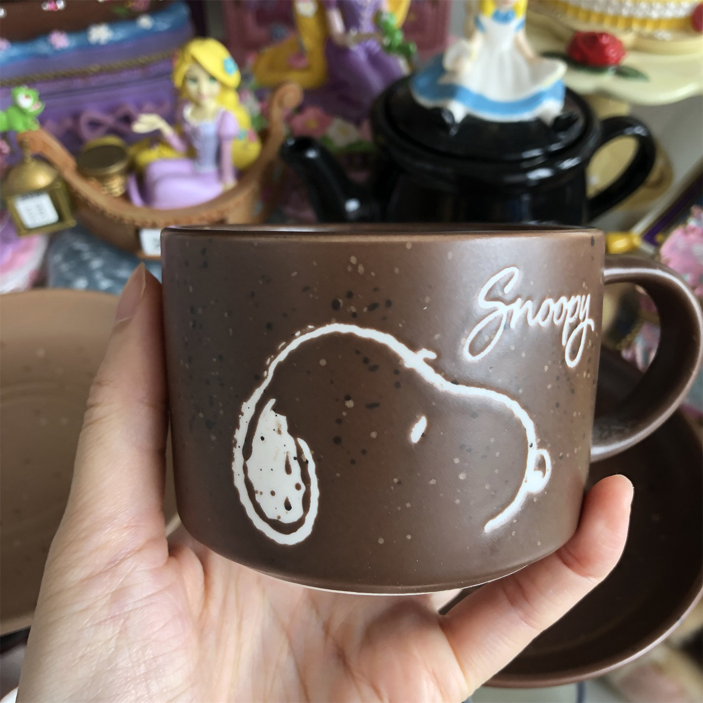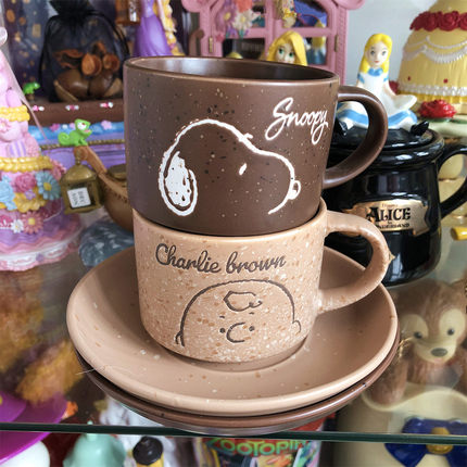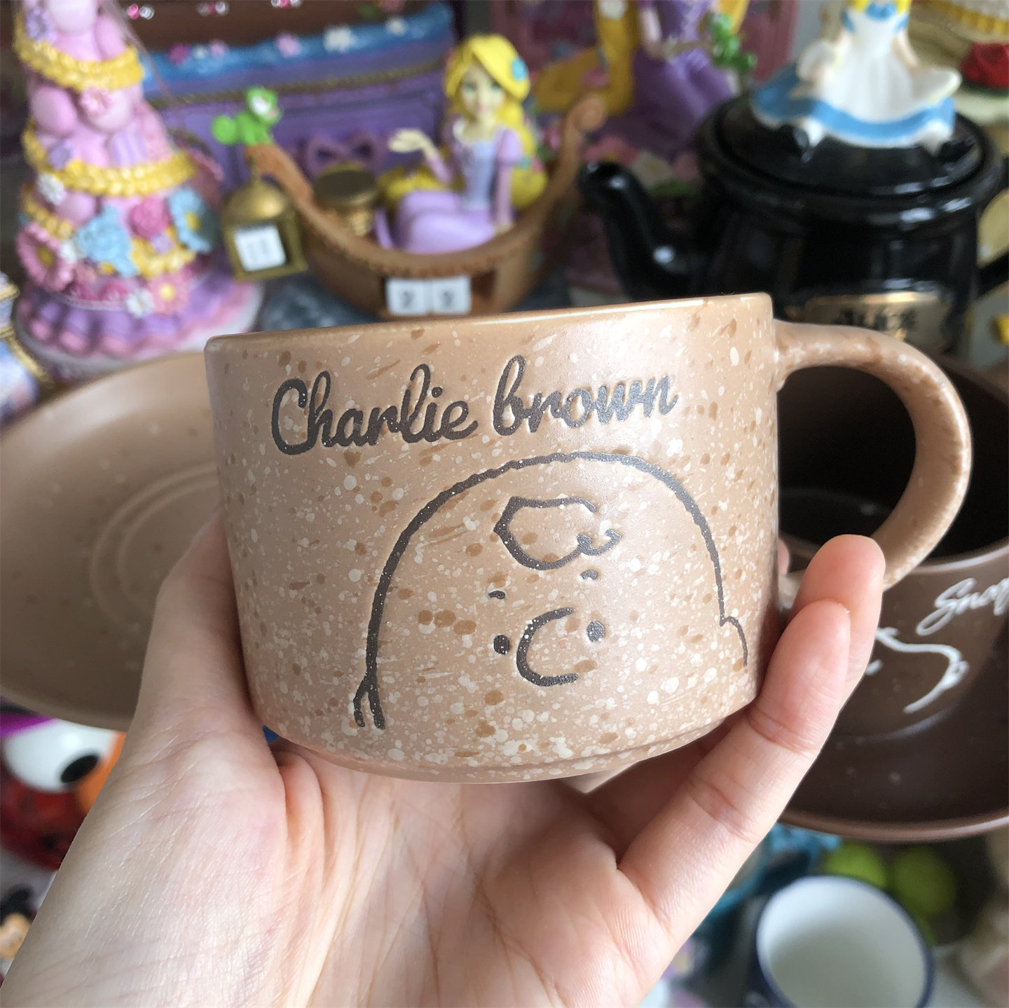出口原单史努比与主人查理布朗马克杯咖啡色套装早餐水杯咖啡杯