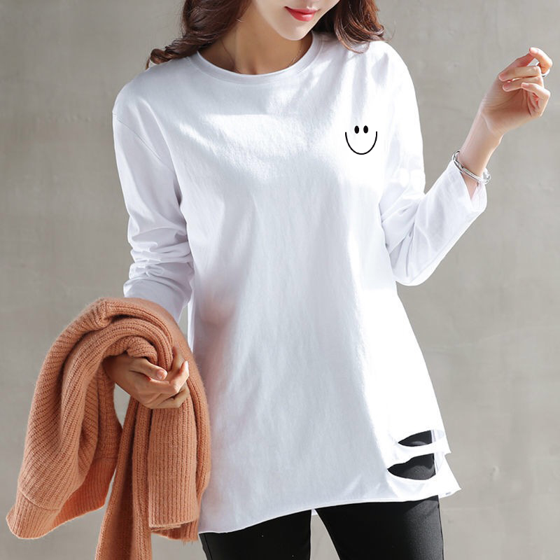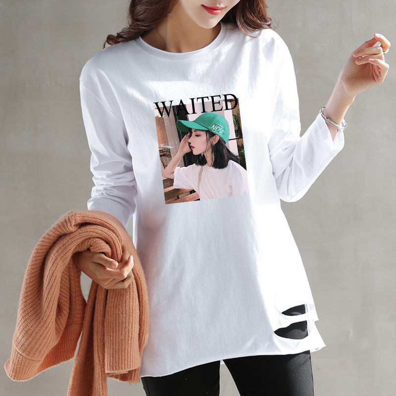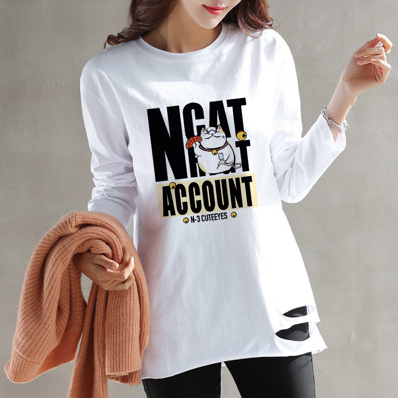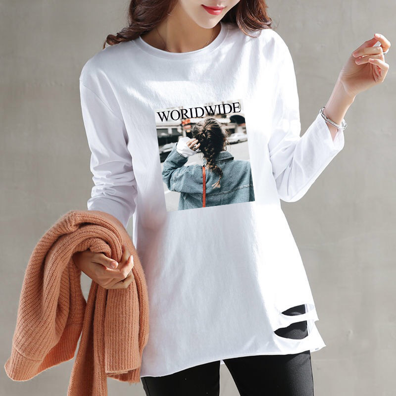 中长款打底衫女加绒春秋冬季宽松白色卫衣内搭长袖t恤女纯棉上衣