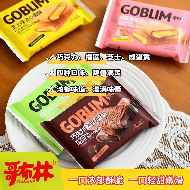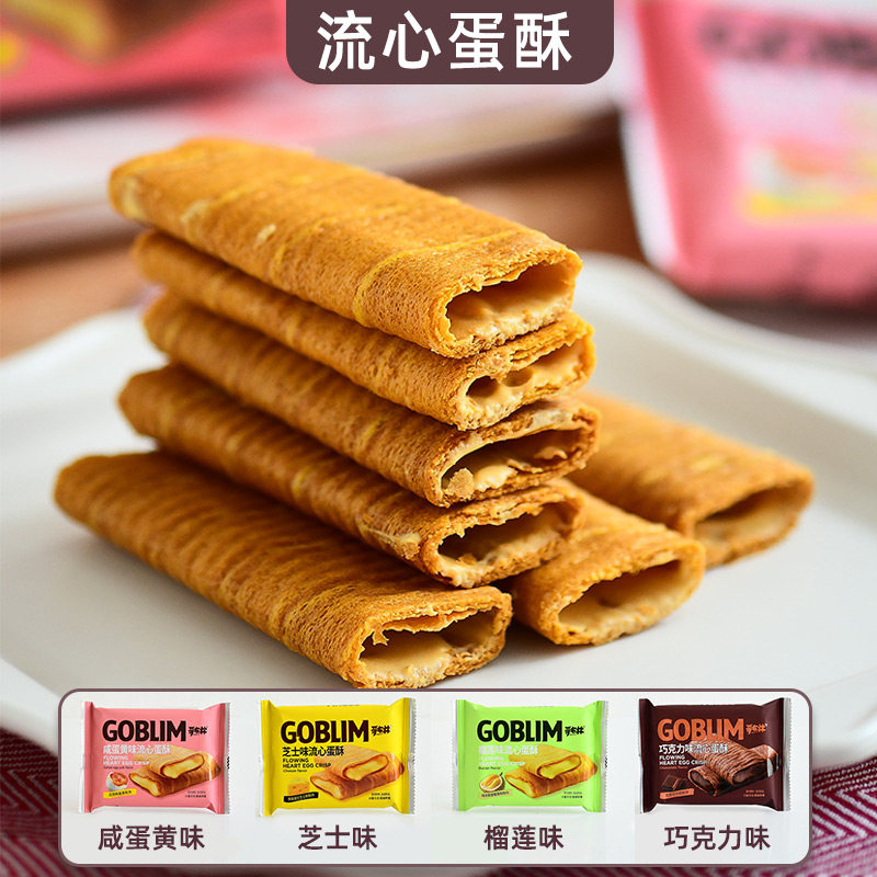 哥布林流心蛋酥咸蛋黄芝士榴莲味注心夹心鸡蛋卷办公室休闲零食