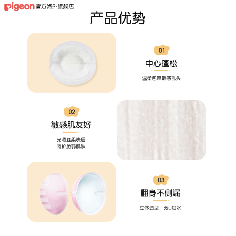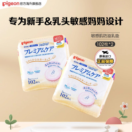 贝亲敏感肌型防溢乳垫哺乳期1次性超薄透气轻柔乳贴102枚*2包进口