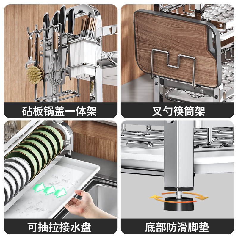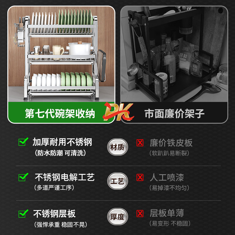 不锈钢碗碟收纳架筷筒沥水碗盘放碗碟子盘子碗架厨房置物架多功能
