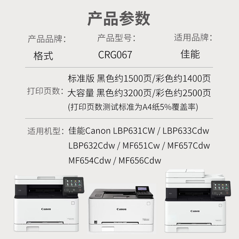 MF657Cdw适用佳能MF650c硒鼓CRG067 MF655dw墨盒Canon MF651cw 654/656Cdw碳粉盒LBP631Cw 633Cdw彩色打印机