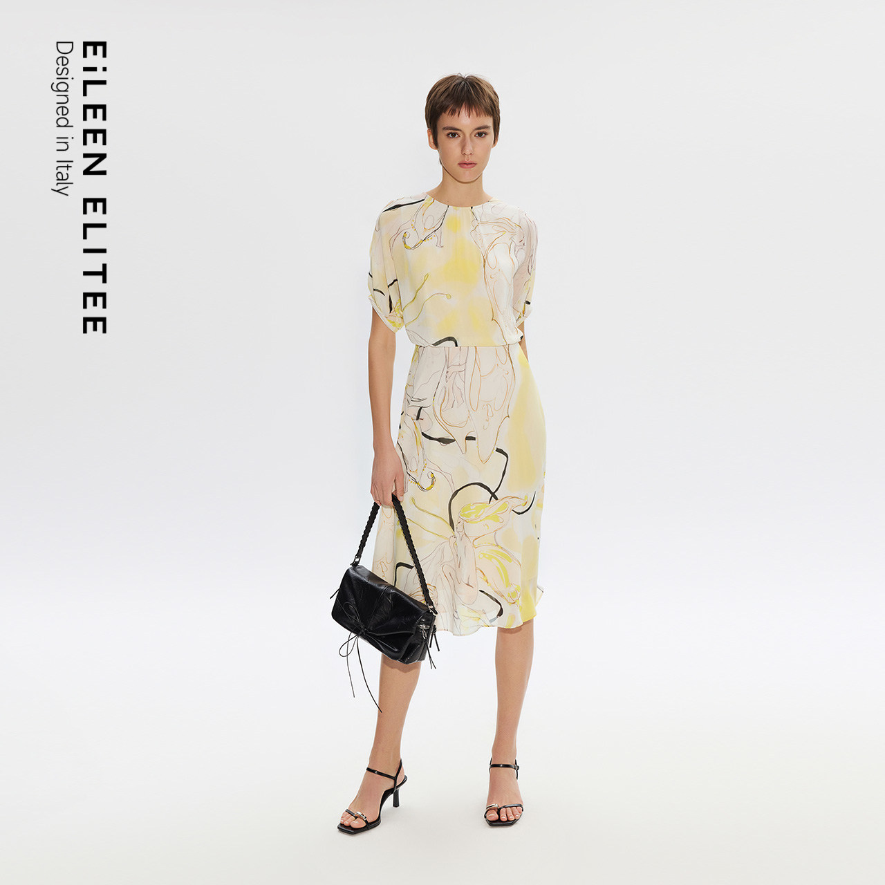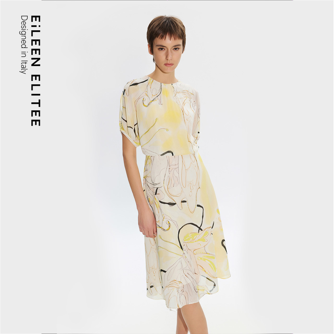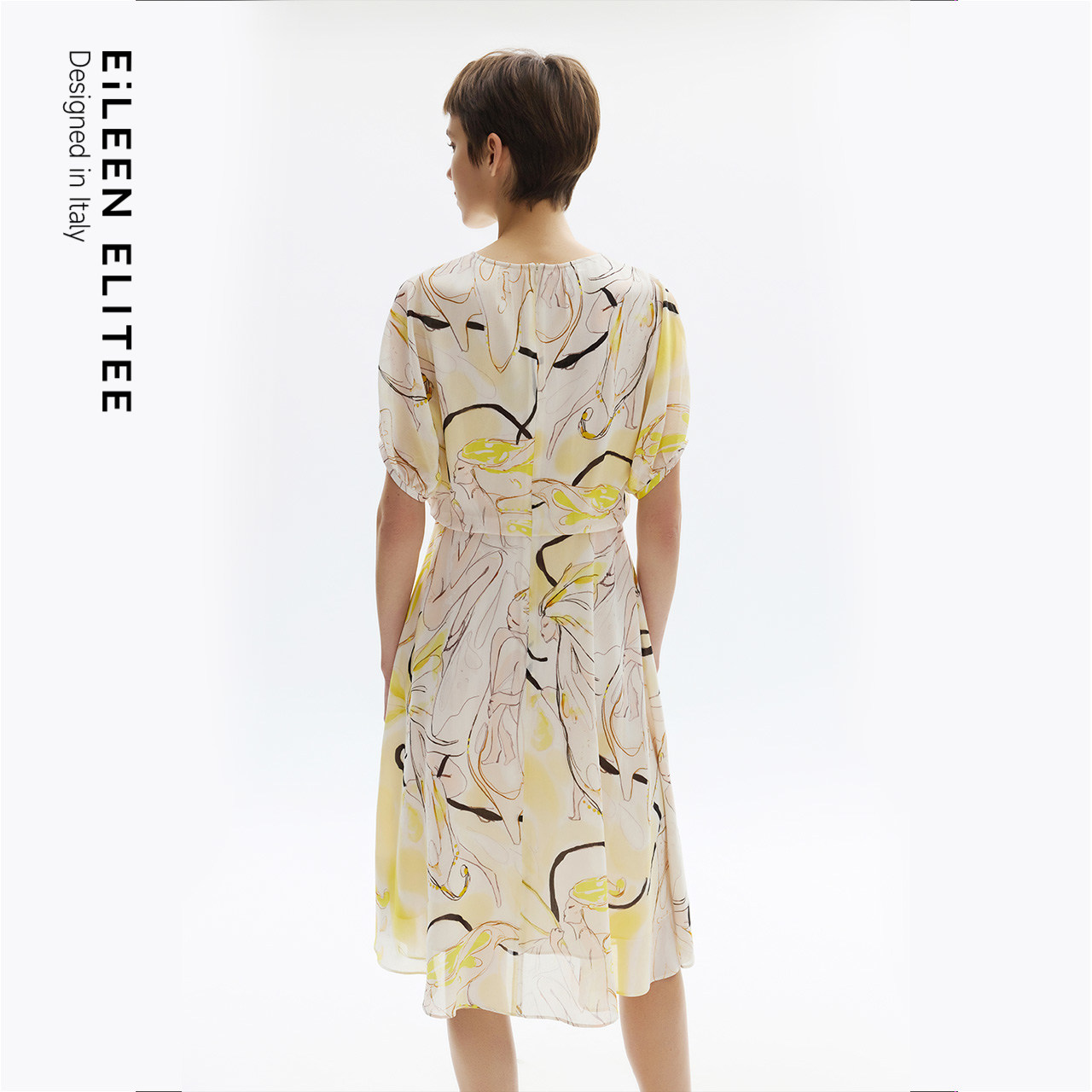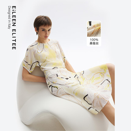 朗姿欧洲EiLEEN ELITEE真丝设计感印花捏褶连衣裙2025年夏季新款