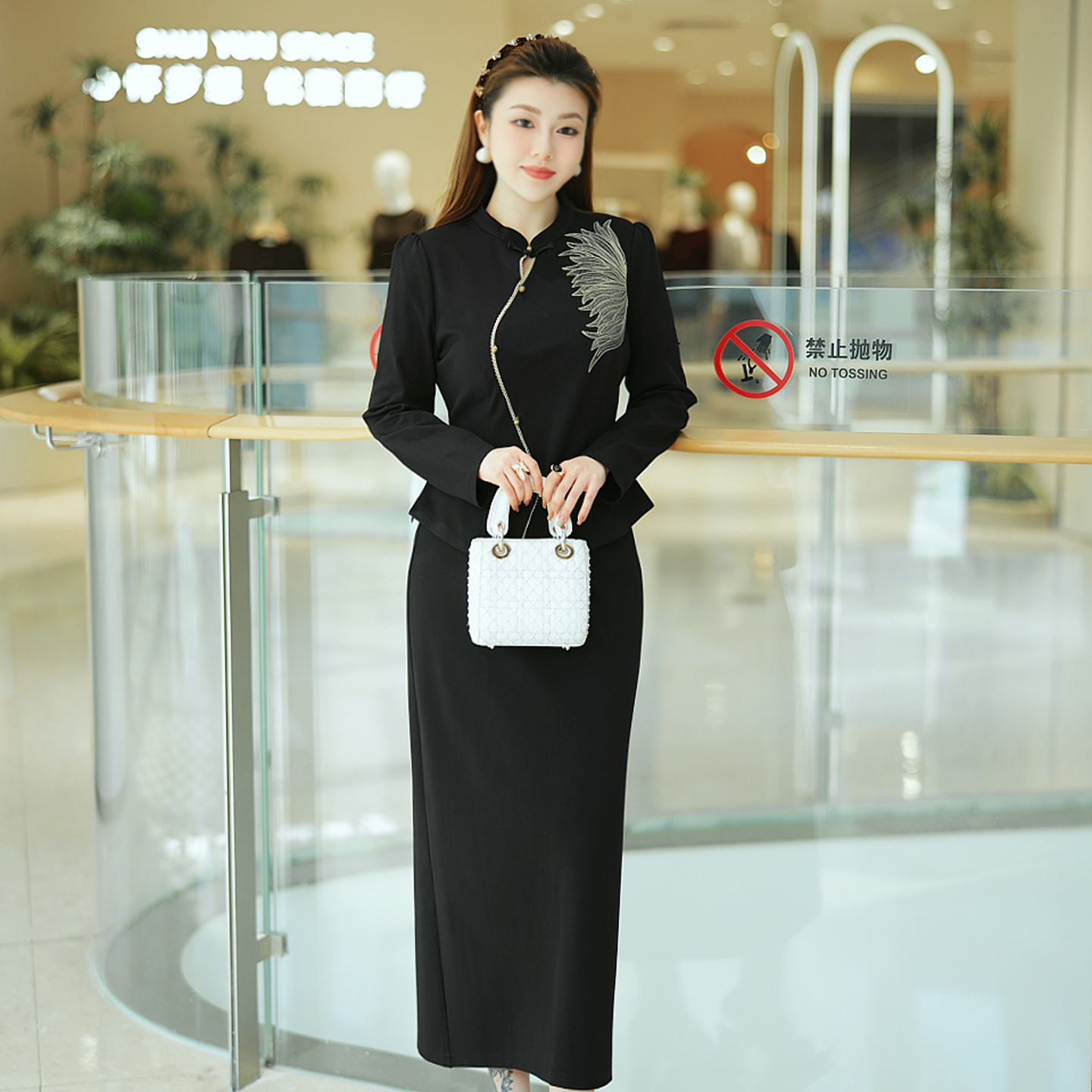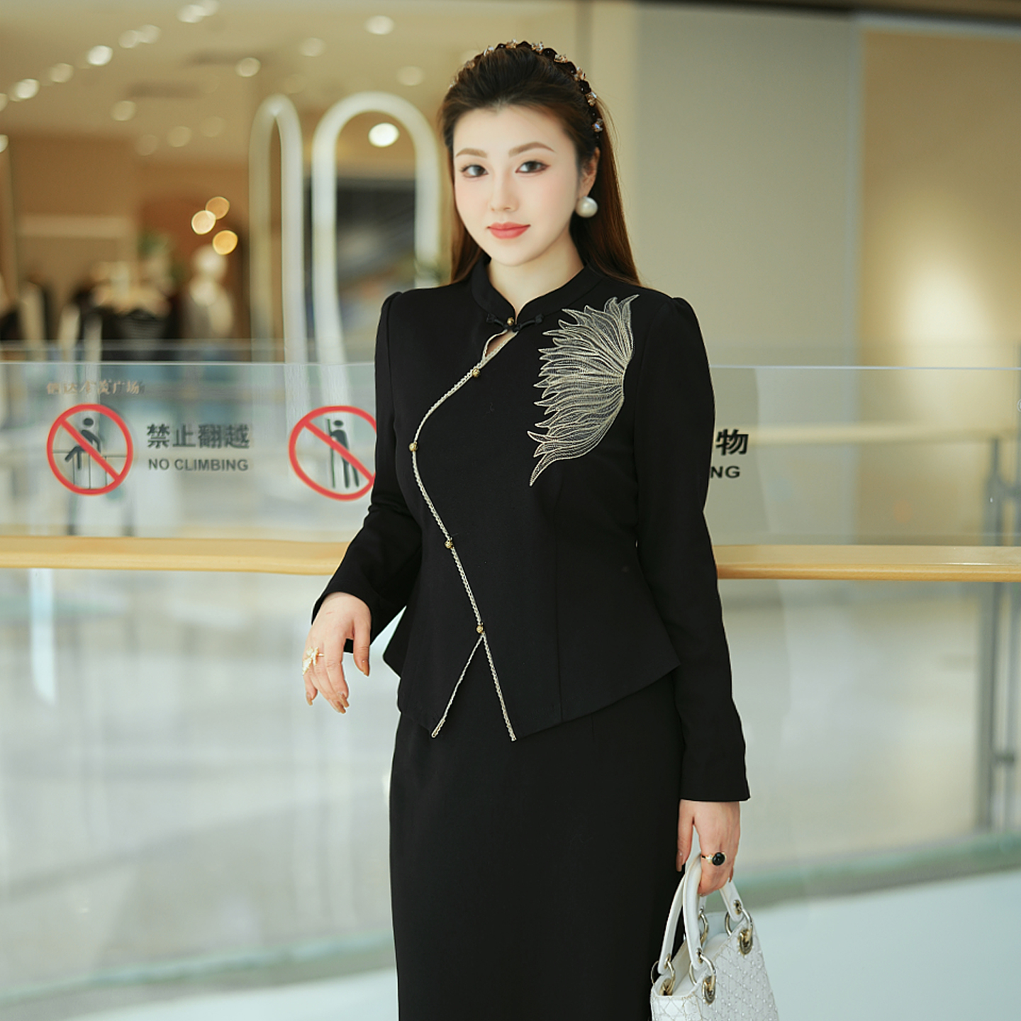 XYD71712/XYD71349国风中式盘扣斜襟上衣半身裙大码女装长袖套装