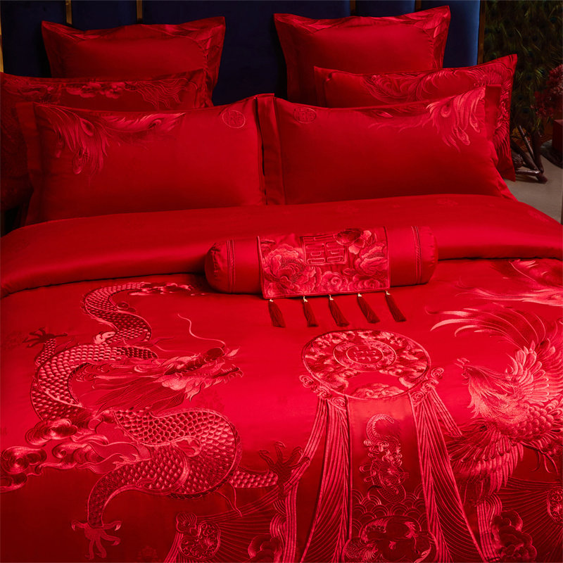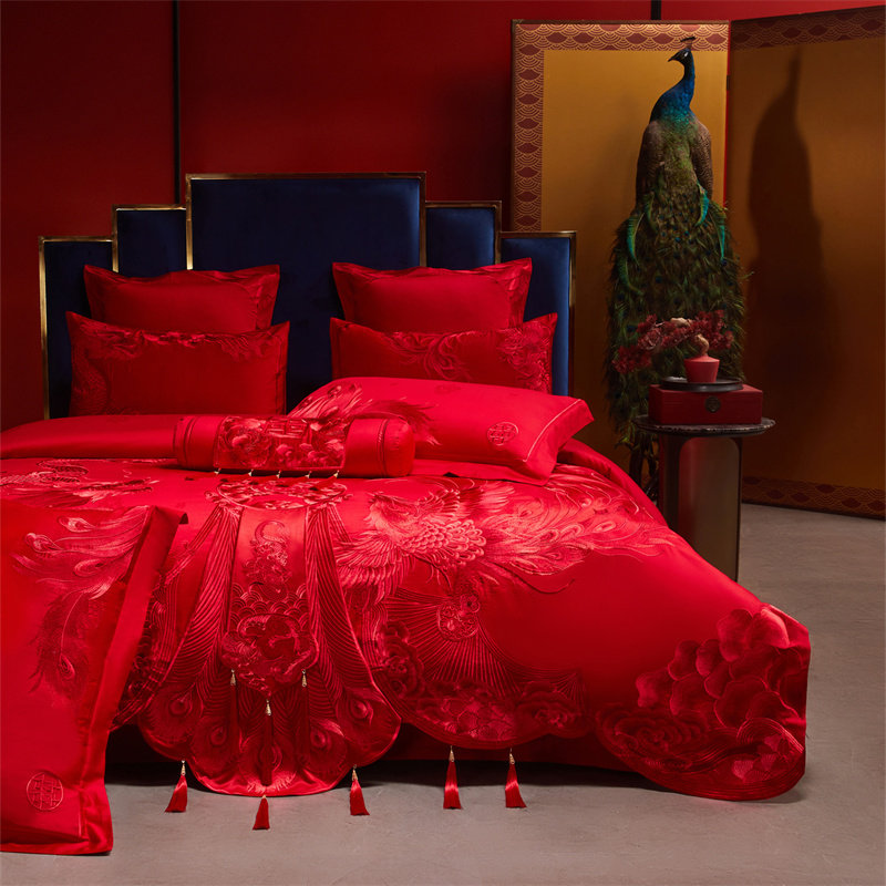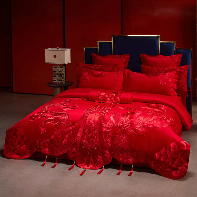 良缘阁高档100支长绒棉结婚四件套婚庆红色床单喜被婚嫁床上用品
