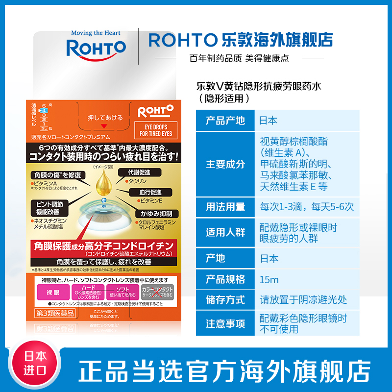 日本原装乐敦美瞳隐形眼镜眼药水缓解干涩润眼止痒消炎黄钻滴眼液