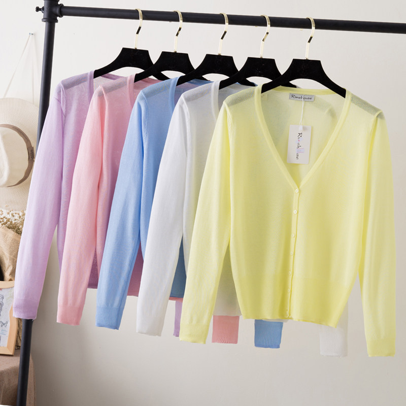 外搭夏季长袖薄款冰丝上衣针织衫开衫女披肩搭连衣裙防晒毛衣外套