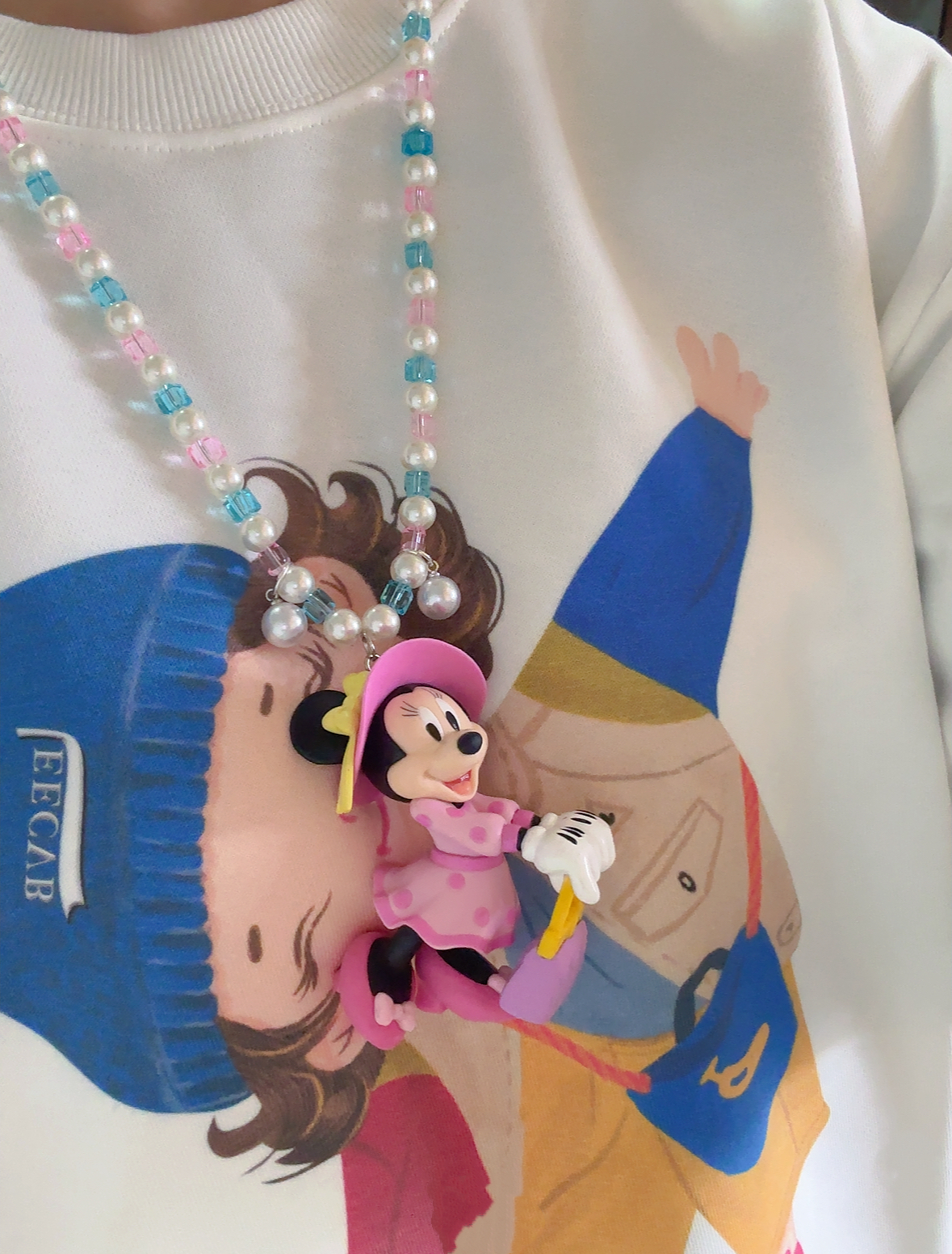 Liya手作饰品迪士尼米妮米老鼠卡通可爱项链女多巴胺长款毛衣链女