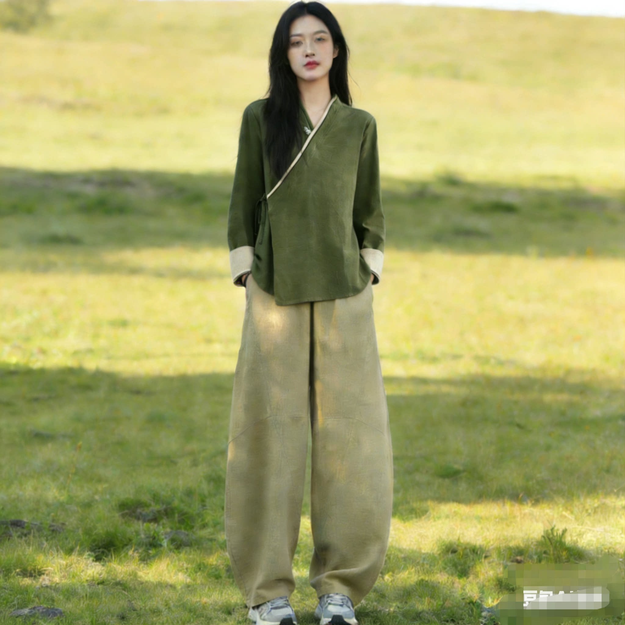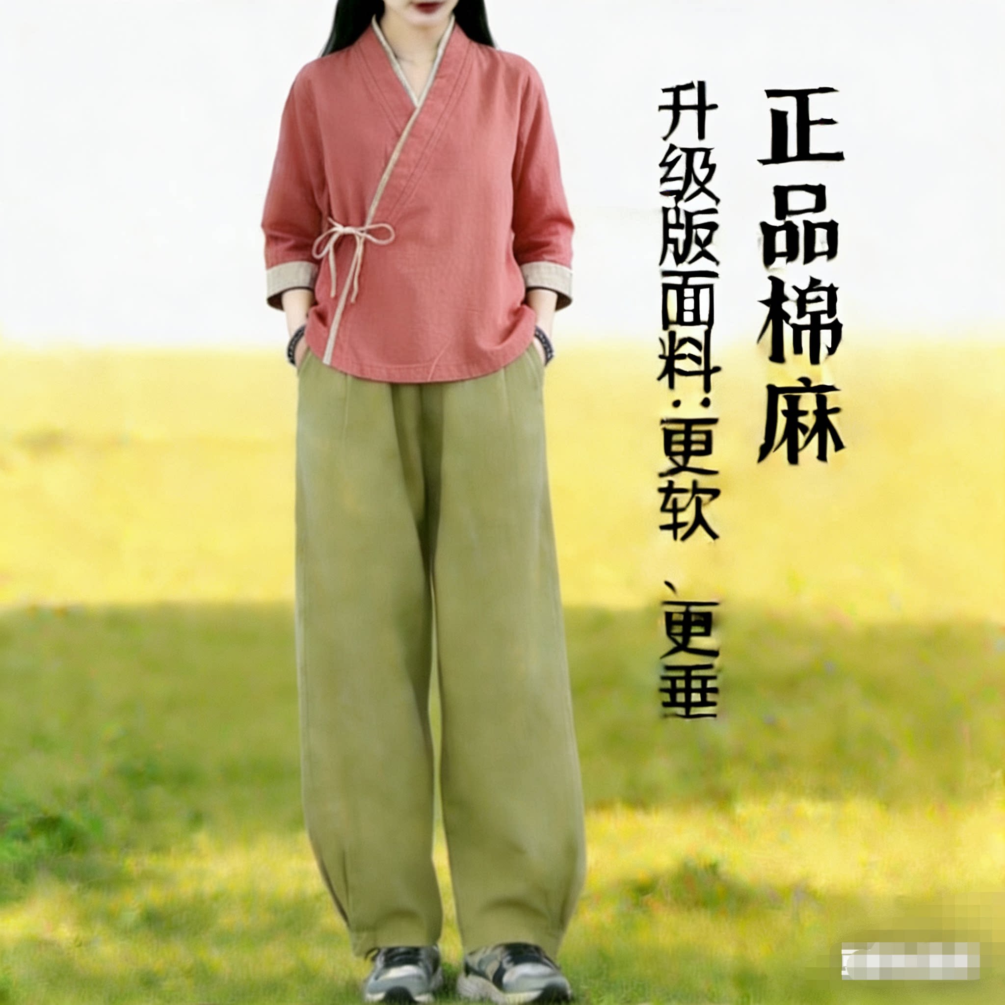 2026年秋新款文艺斜襟盘扣长袖衬衫女中国风汉服棉麻禅意茶服