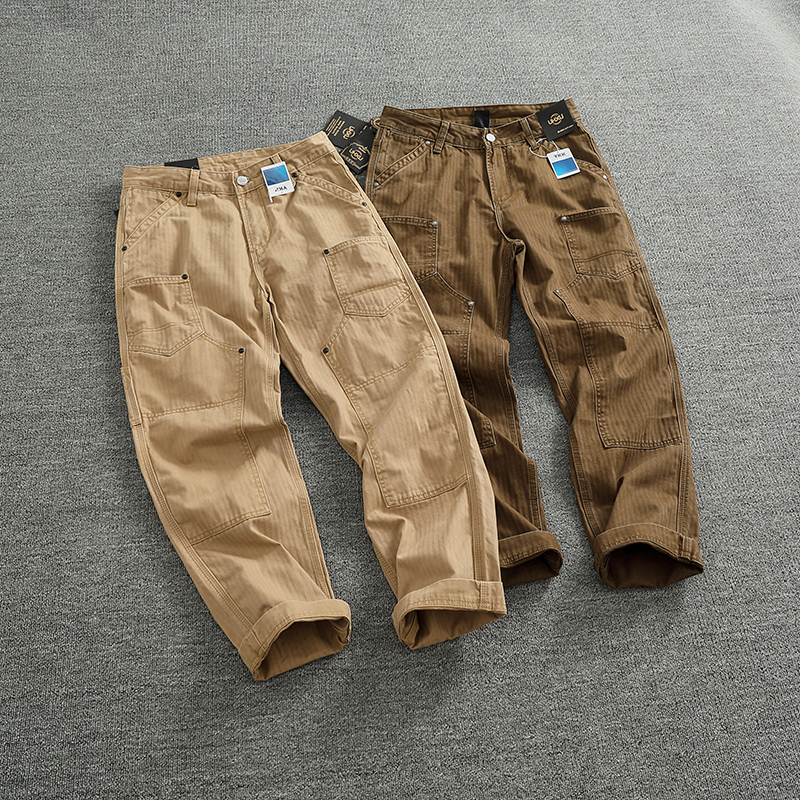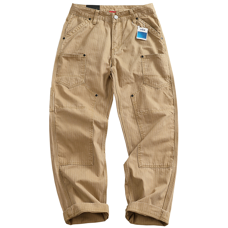 质感鱼骨纹纯棉梭织休闲裤男重磅秋冬新款长裤潮款改良伐木工装裤