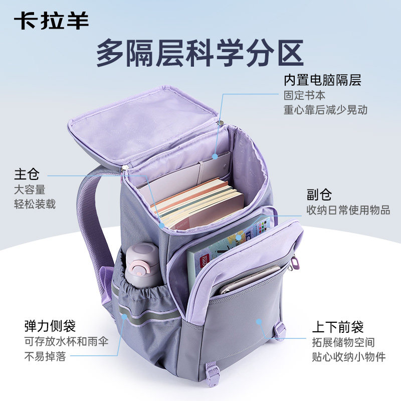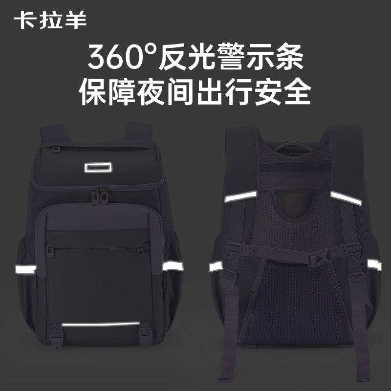 卡拉羊新款初中学生书包高年级大容量6维防下坠减负大嘴双肩包