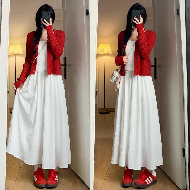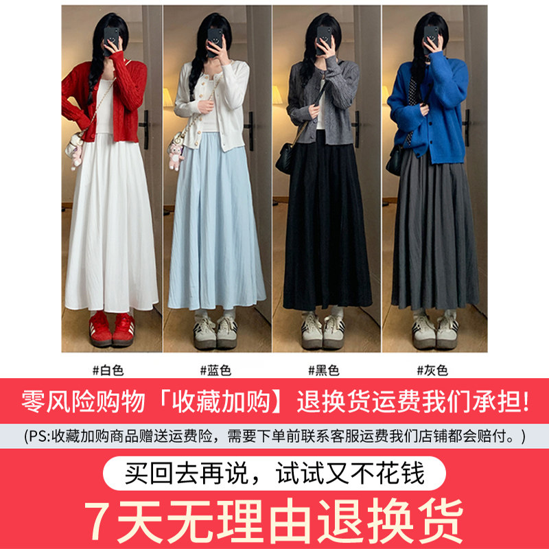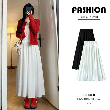 白色温柔气质感半身裙女春秋季2026新款高腰垂感显瘦a字百褶长裙