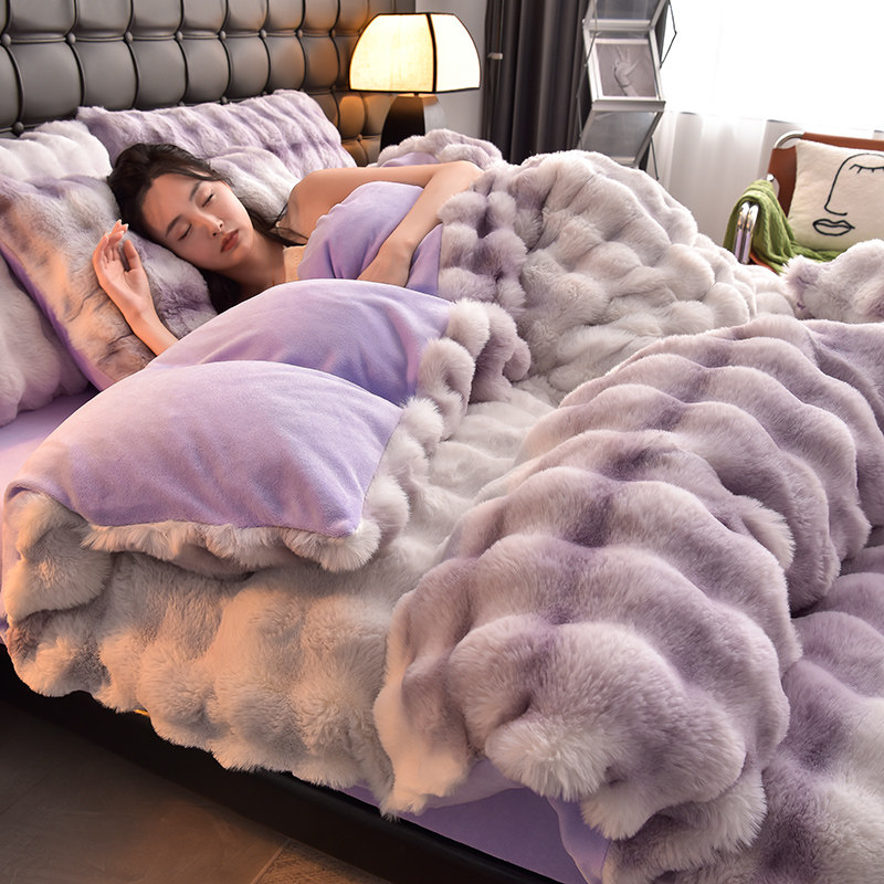 A类加厚兔兔绒四件套耐脏灰白牛奶绒珊瑚绒双面绒加绒被套保暖冬