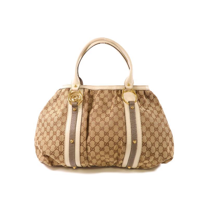 中古Gucci古驰女包A级95新 Tote Bag托特包帆布单肩包棕色正品HK