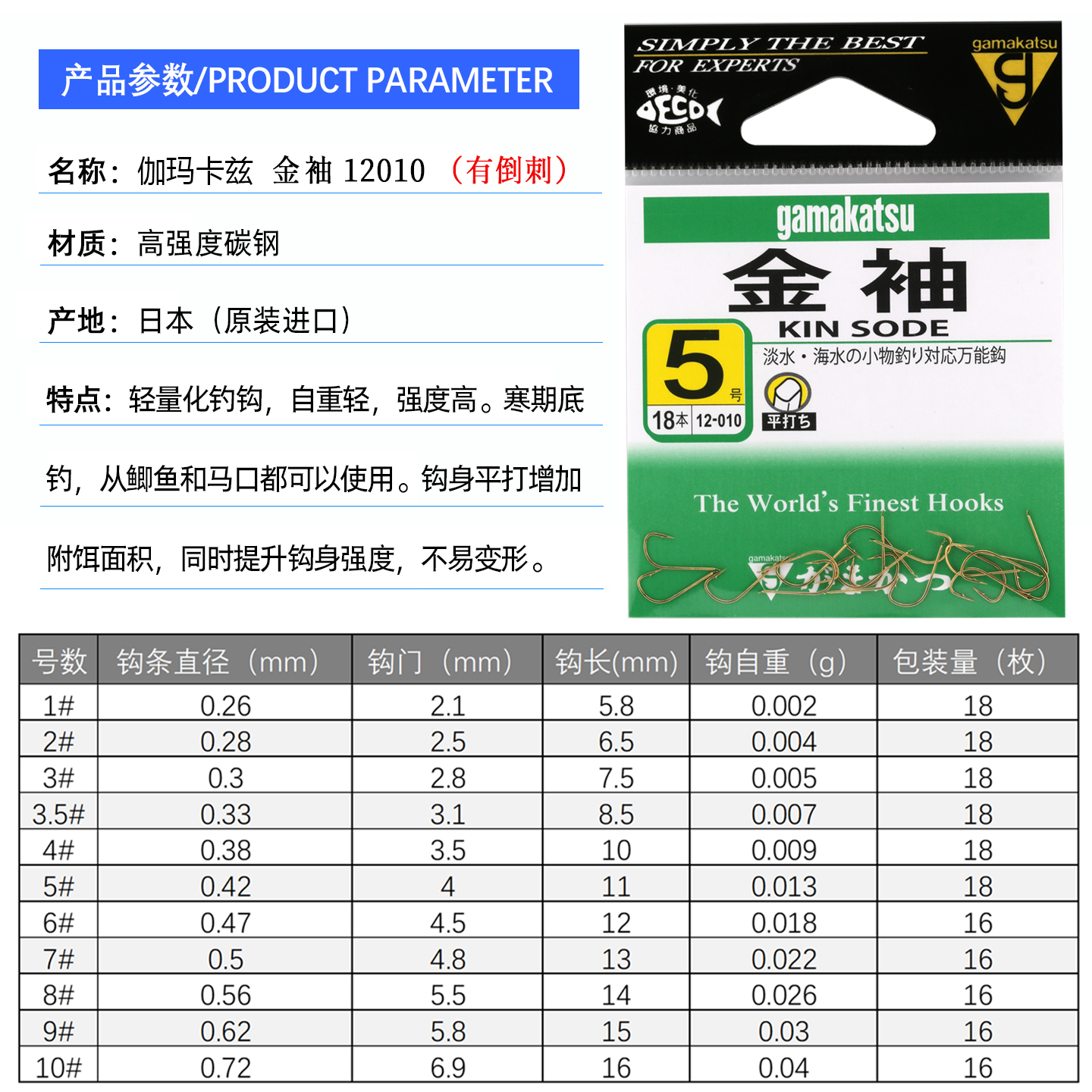 伽玛卡兹鱼钩gamakatsu日本原装金袖有倒刺12010轻量细袖鲫鱼钩