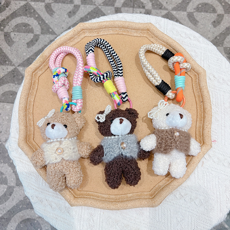 日韩风小熊毛绒挂件 可爱马甲珍珠蝴蝶结 钥匙扣卡通包包装饰