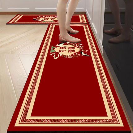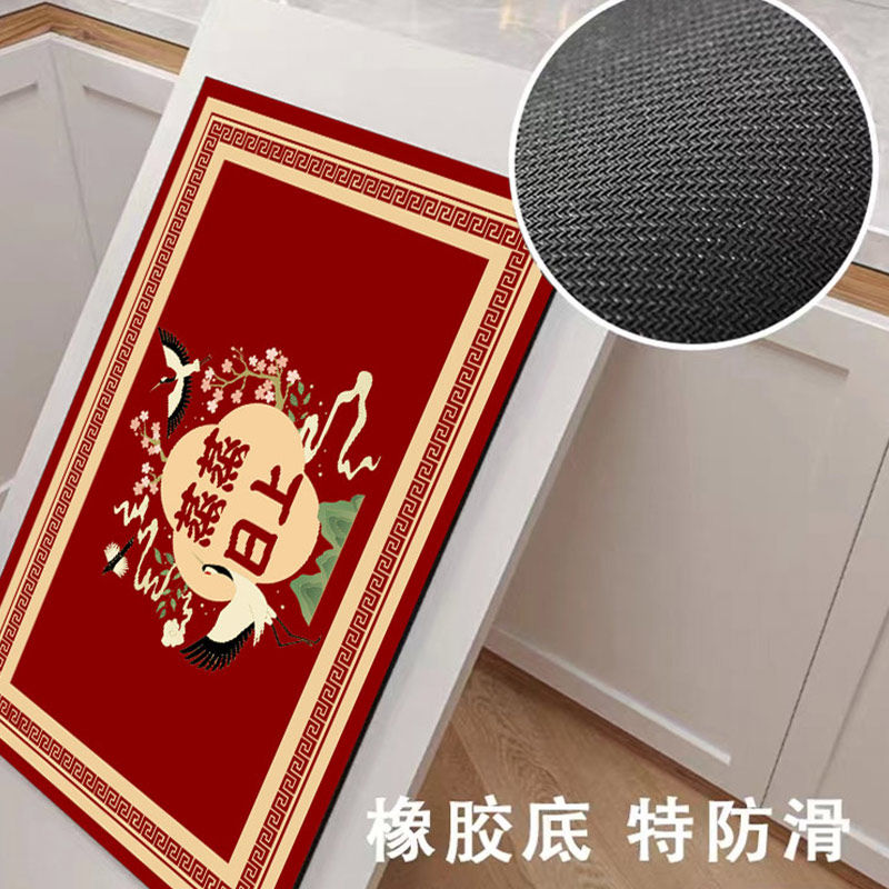 厨房地垫新年喜庆防滑防油可擦免洗专用地毯乔迁硅藻泥耐脏脚垫子