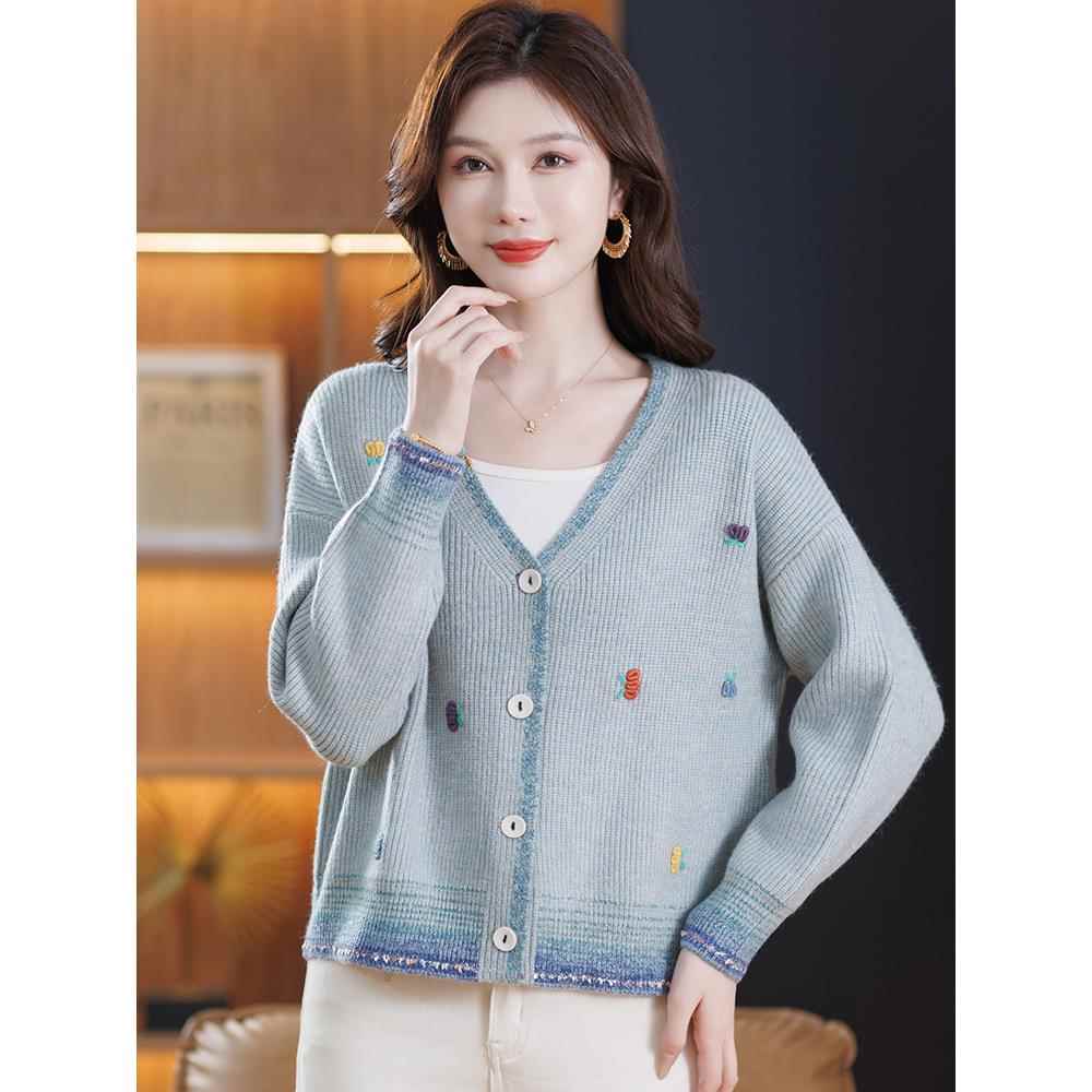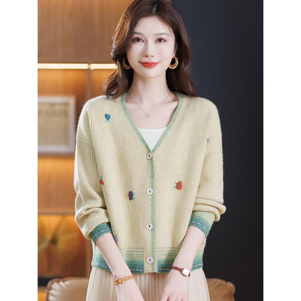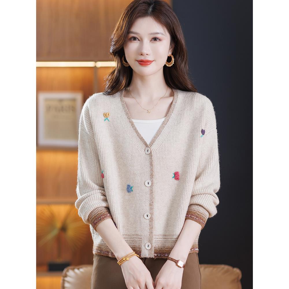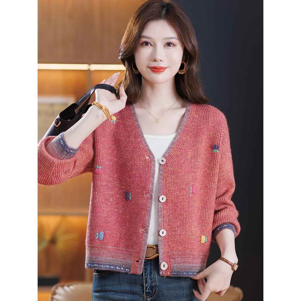 妈妈针织开衫春秋短款宽松洋气减龄女装上衣显瘦漂亮女士毛衣外套