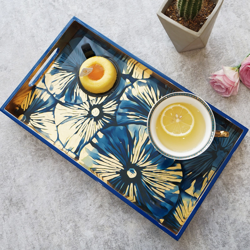 新品欧式木漆长方形托盘果盘茶盘家居收纳餐厅样板间软装饰品礼物