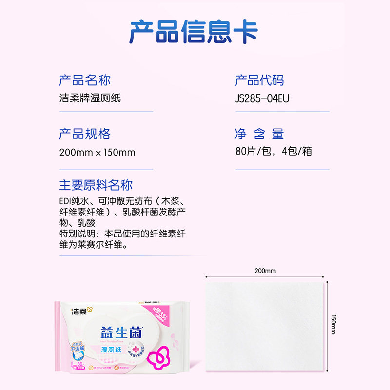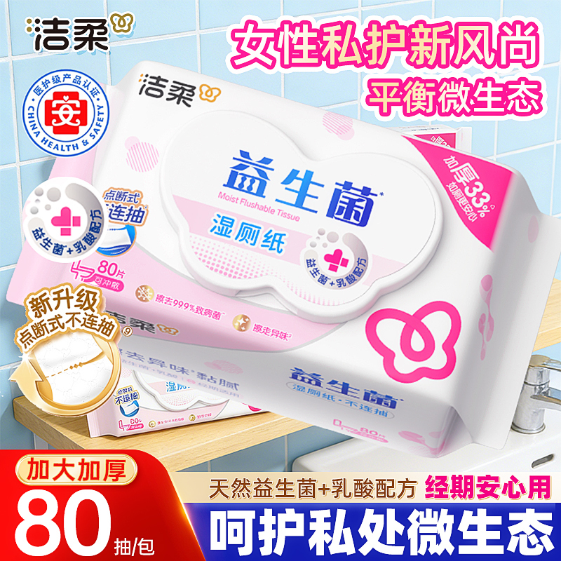 洁柔湿厕纸加厚益生菌湿厕纸私处可用易溶马桶1包80抽体验装顺买