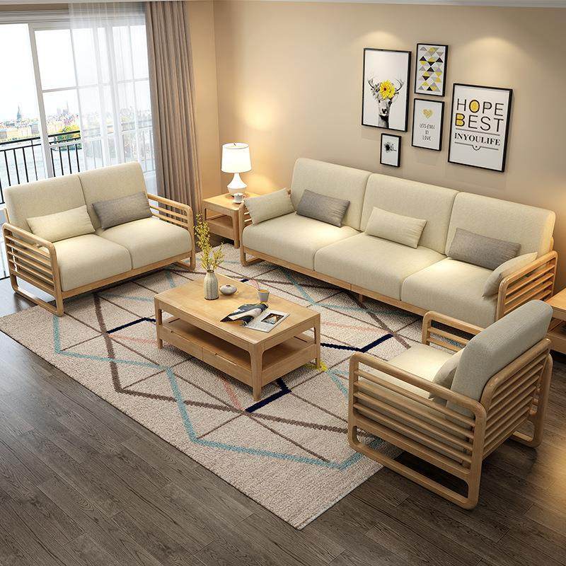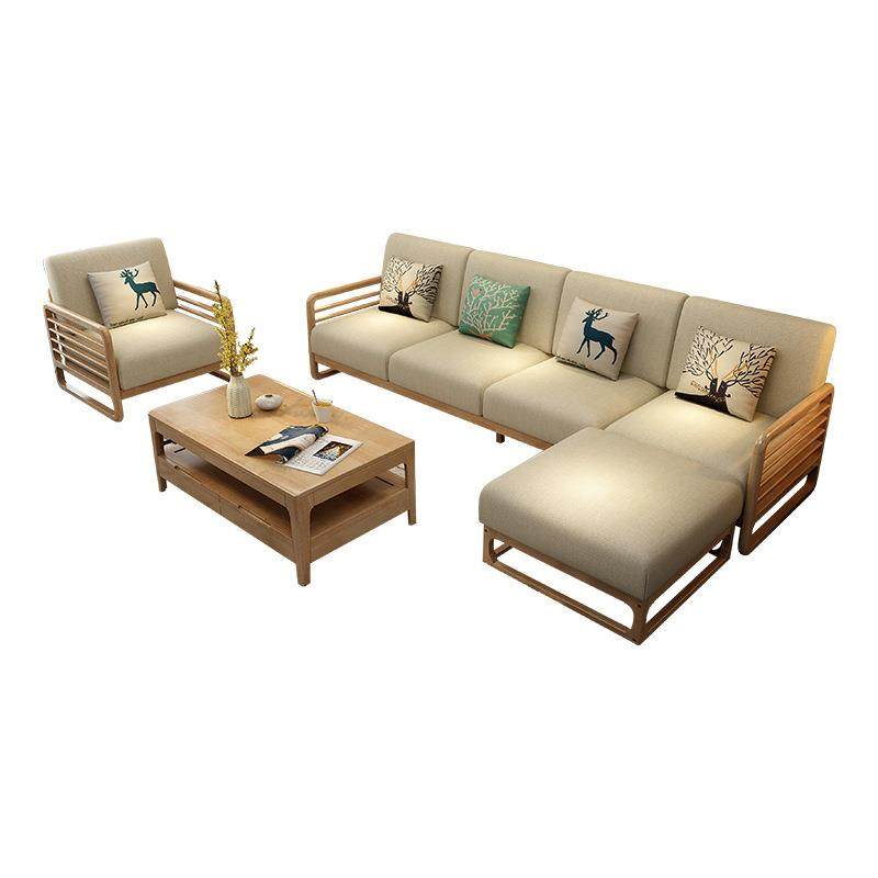 全实木沙发组合客厅转角贵妃茶几北欧家具小户型实木加布艺沙发