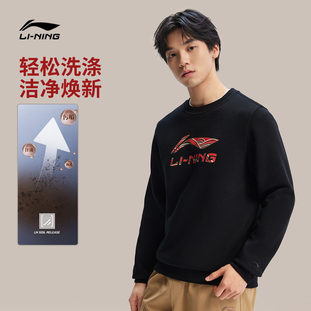 李宁日进斗金男女套头无帽卫衣